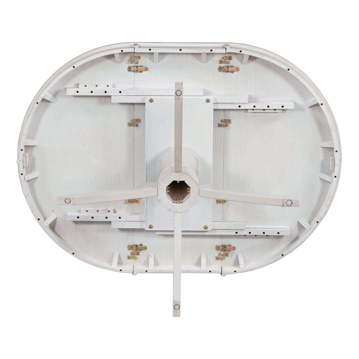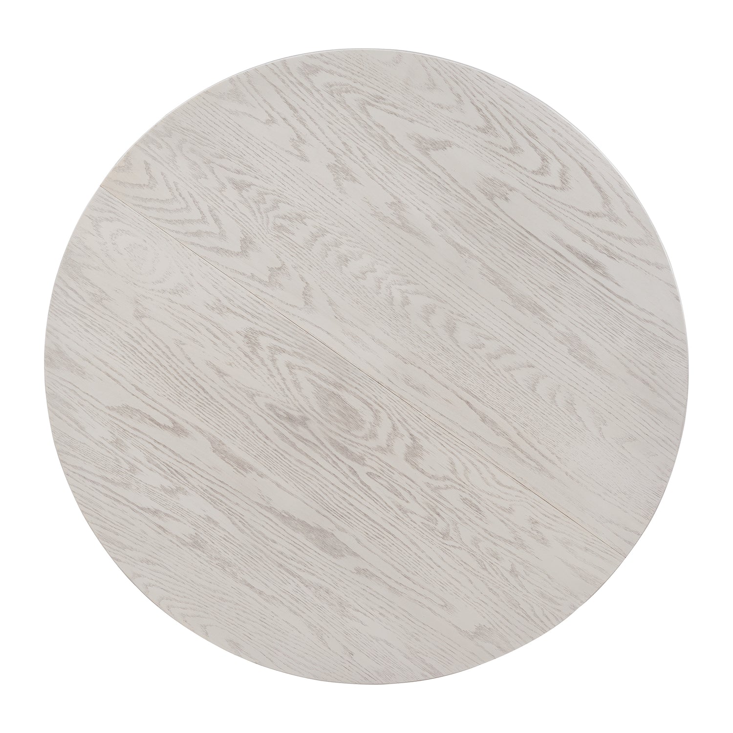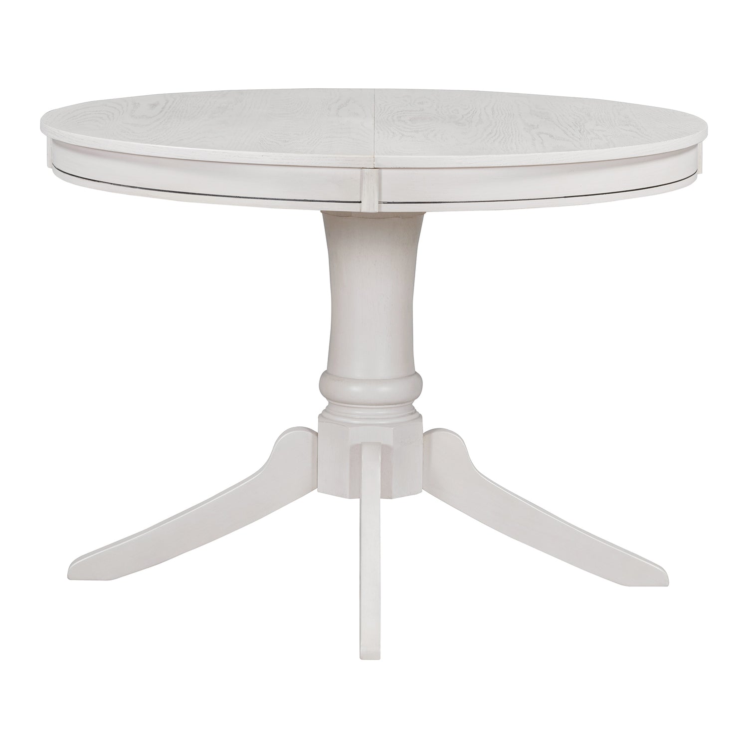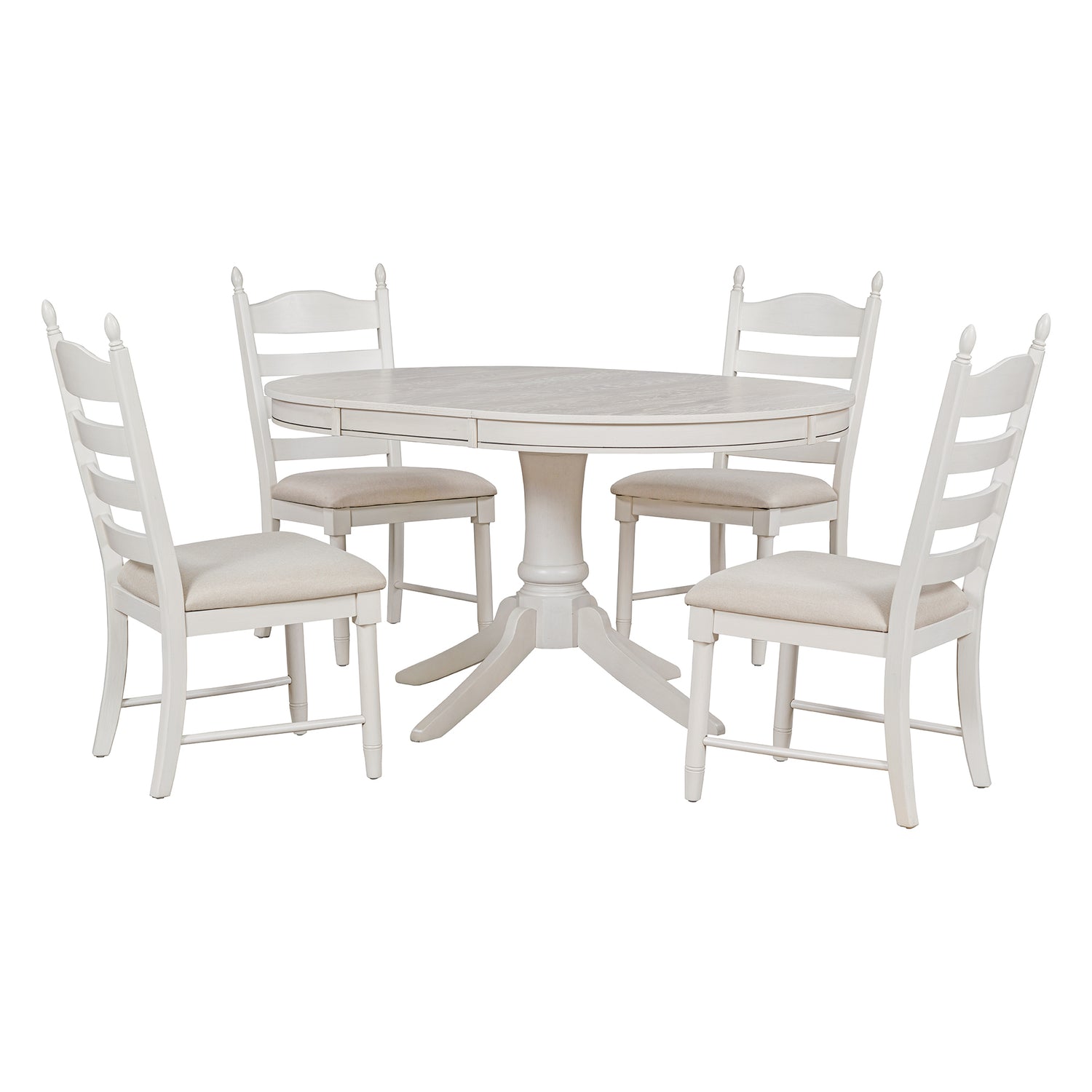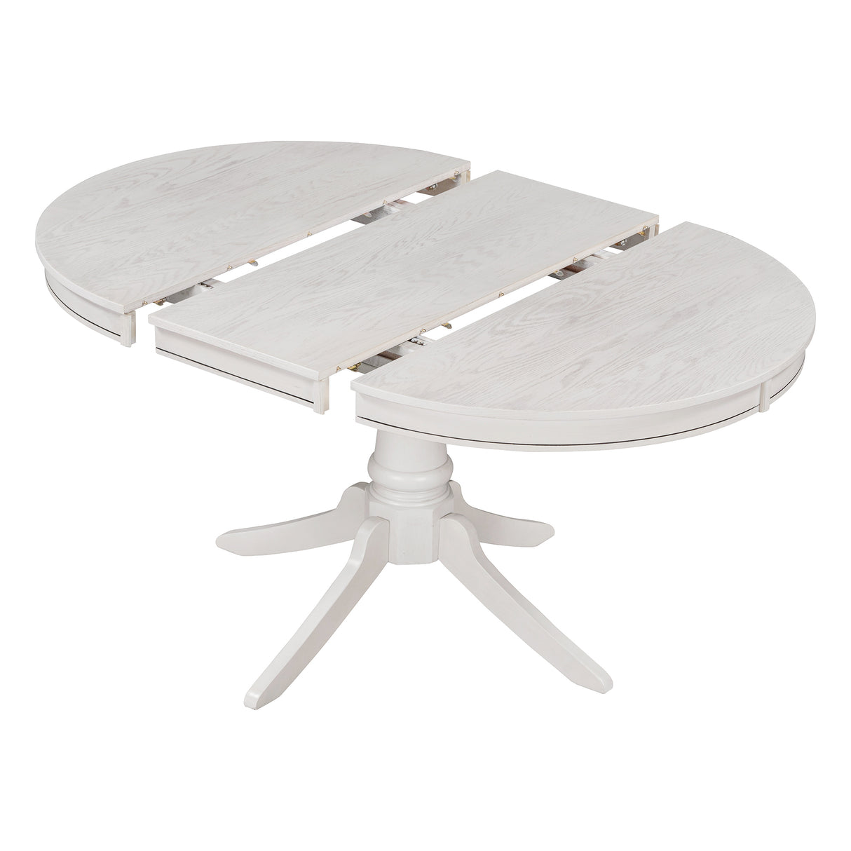 TREXM 5-Piece Retro Functional Dining Table Set Wood Round Extendable Dining Table and 4 Upholstered Dining Chairs (Antique White)