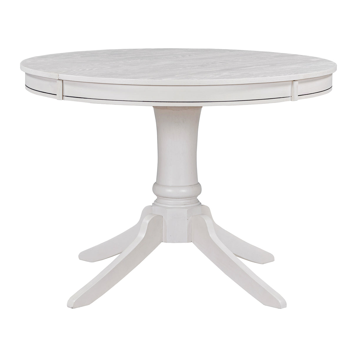 TREXM 5-Piece Retro Functional Dining Table Set Wood Round Extendable Dining Table and 4 Upholstered Dining Chairs (Antique White) is available