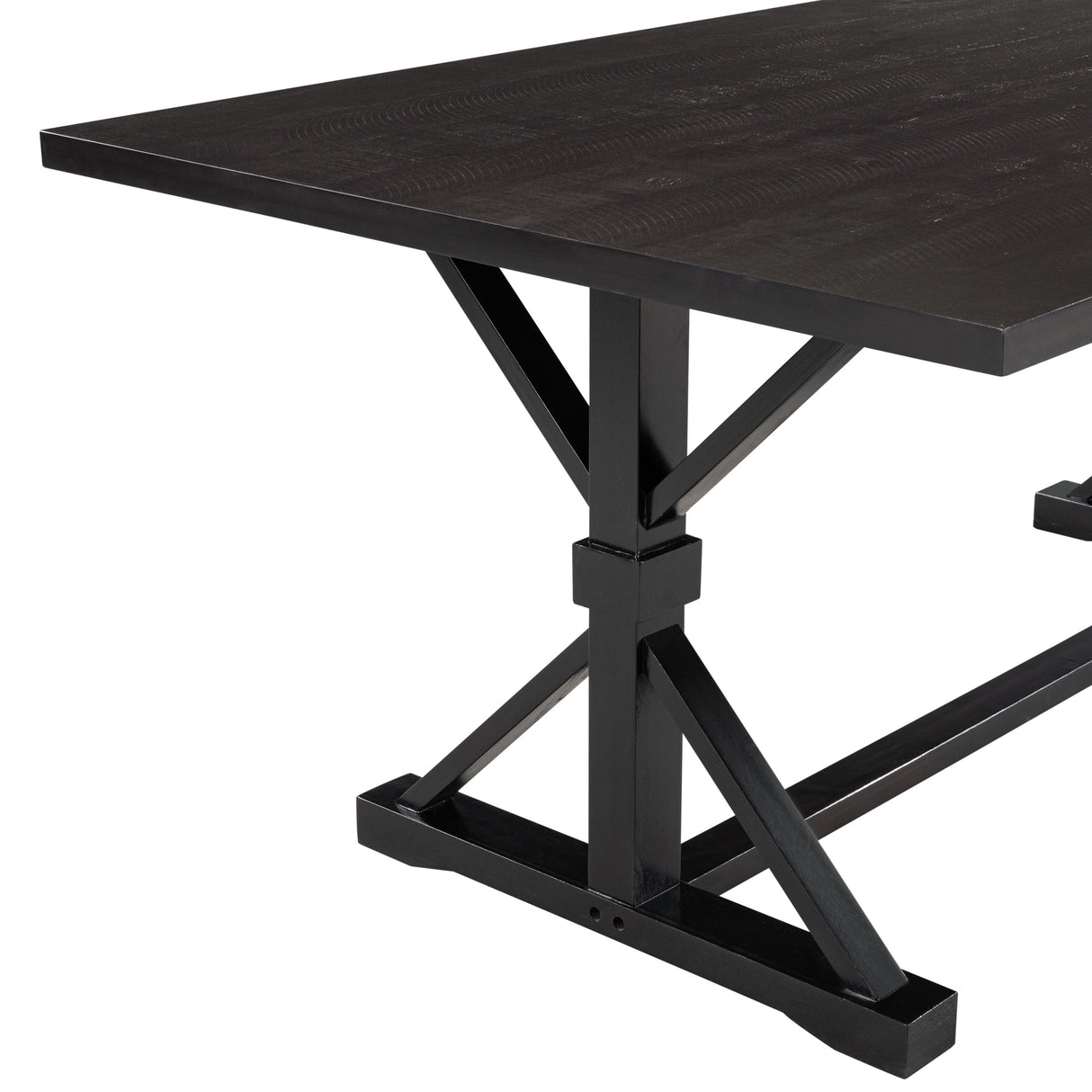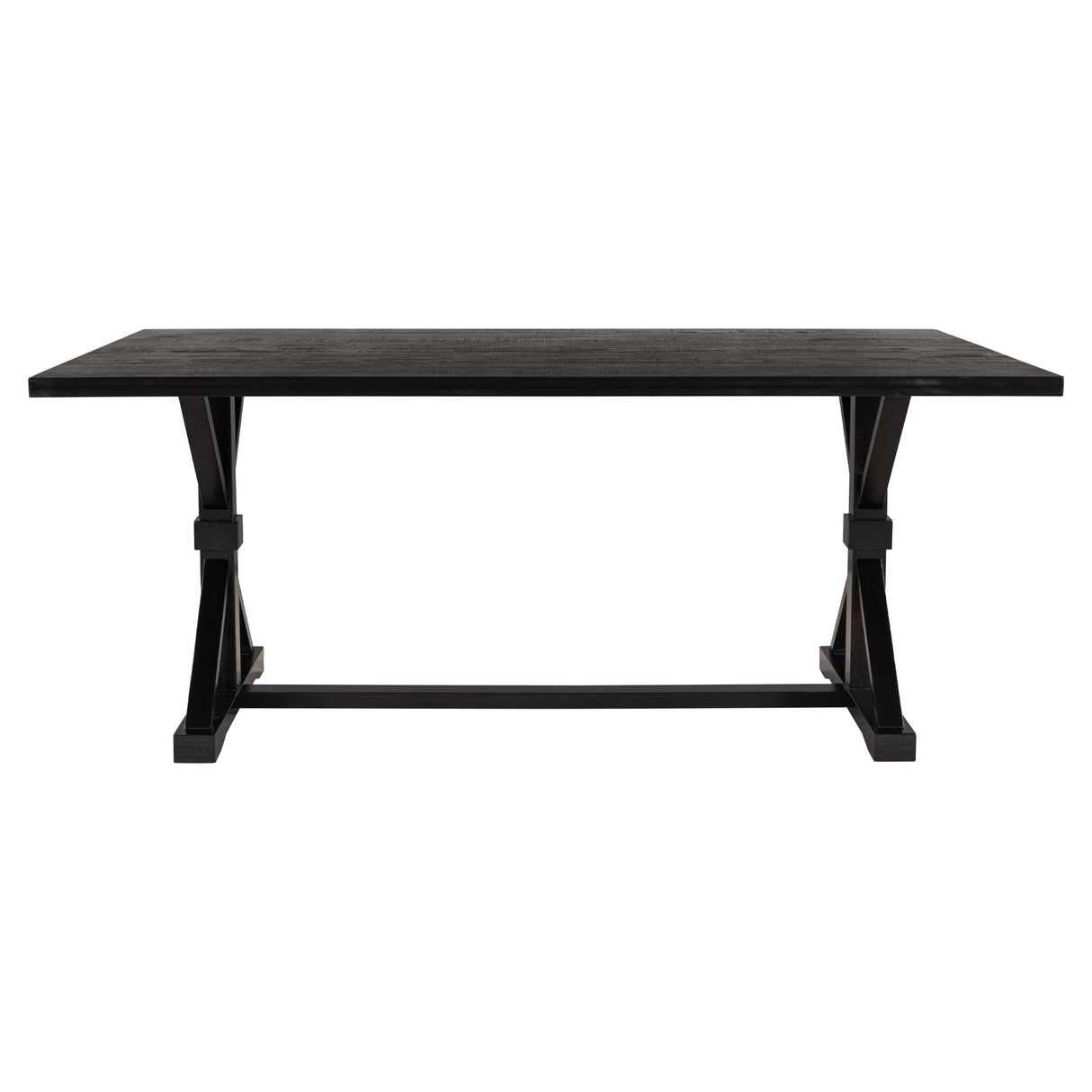 Many of the details show the craftsmanship. A fixed top with meticulous oblique scraping serrated print and a distinctive cross-legged trestle base gives the table a farmhouse feel. At 72'' long, this dining table is best for generous-sized spaces.