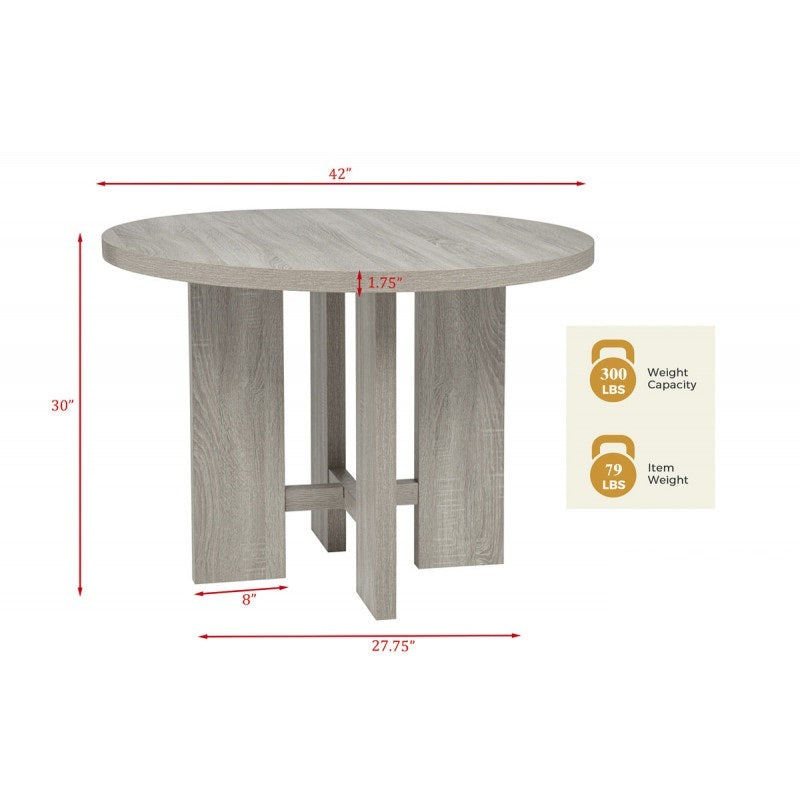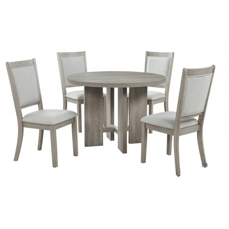 Farmhouse Style 5pc Round Dining Set, 42' Wood Round Dining Table and 4 Upholstered Side Chair, Gray