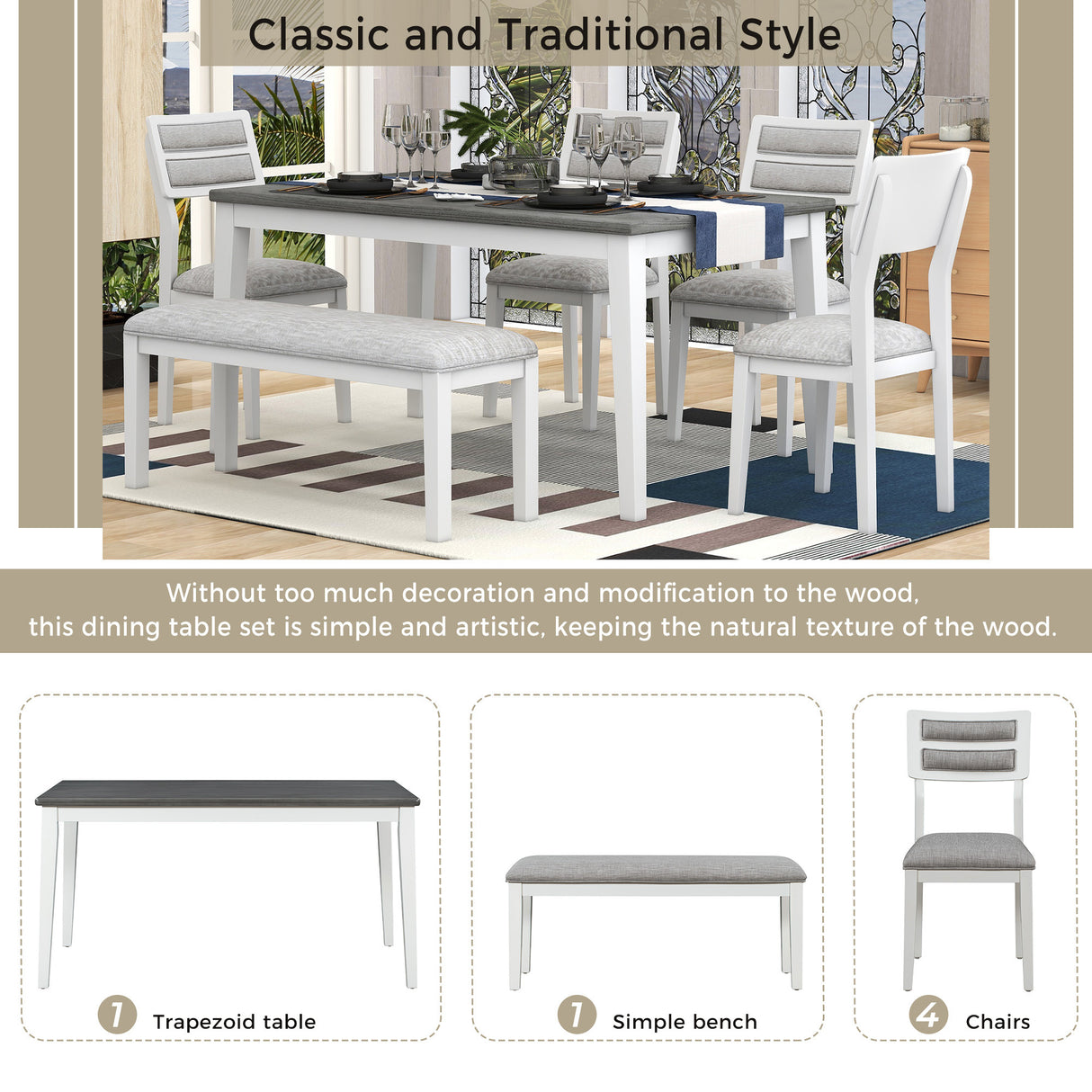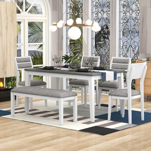 TREXM Classic and Traditional Style 6 - Piece Dining Set, Includes Dining Table, 4 Upholstered Chairs & Bench (White+Gray)