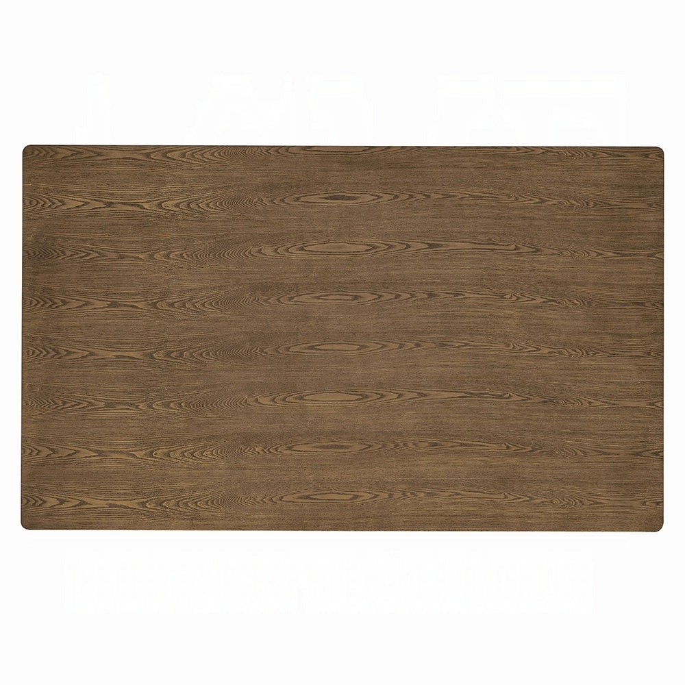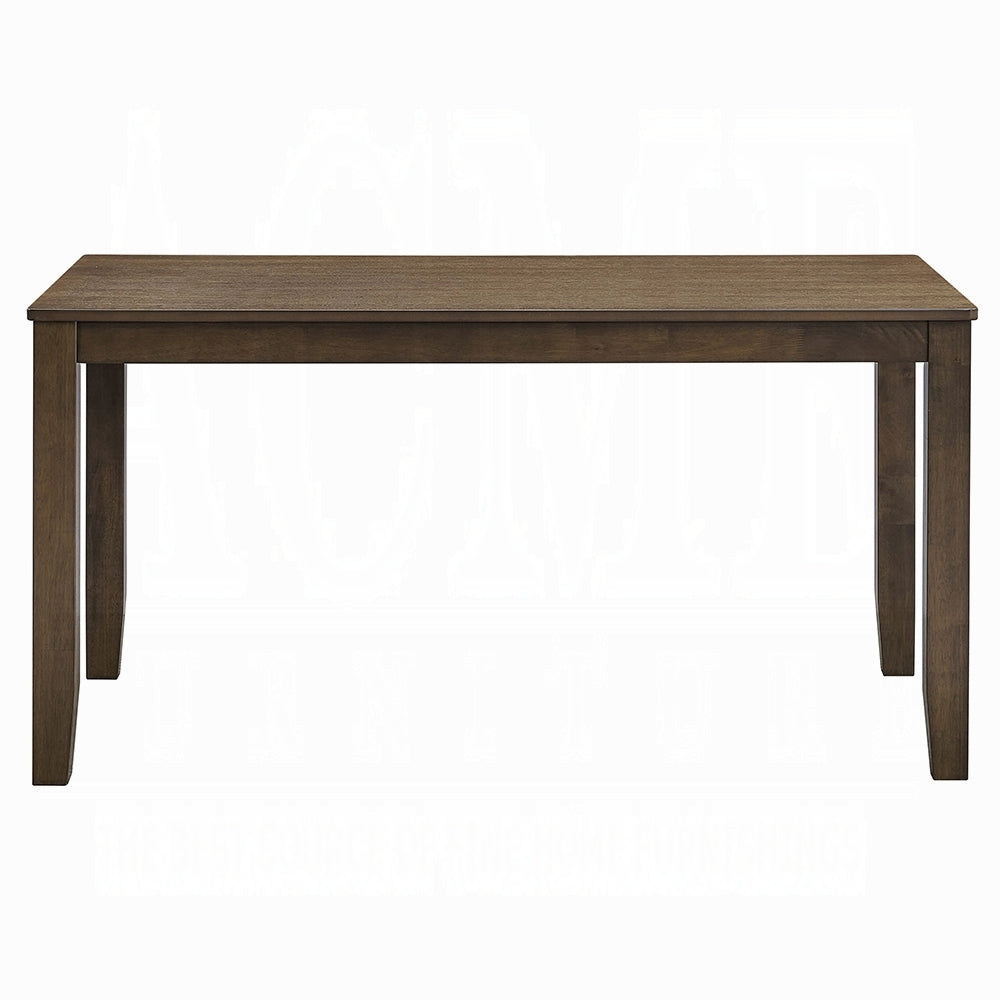 This rectangular dining set is perfect for medium dining spaces. Crafted from a combination of solid rubber wood and composite wood for durability, it features a rich walnut finish that adds warmth and sophistication to any dining room. Chairs features padded seat cushion with brown synthetic leather upholstery.