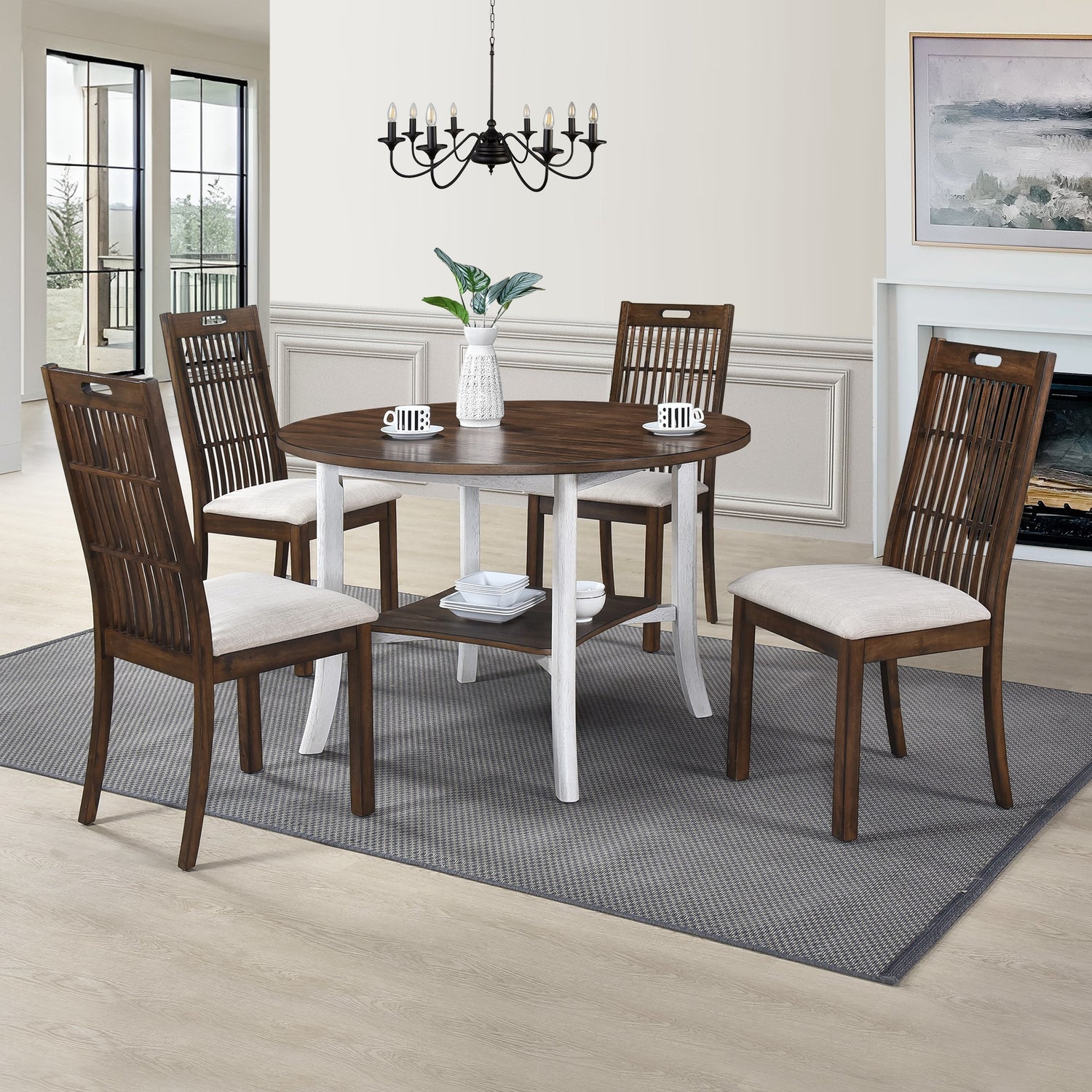 WOODHOMER 5-Piece Round Dining Set, 1 Table with High Back Chairs, Two-Tone Antique White & Walnut Finish, Space-Saving Kitchen Furniture