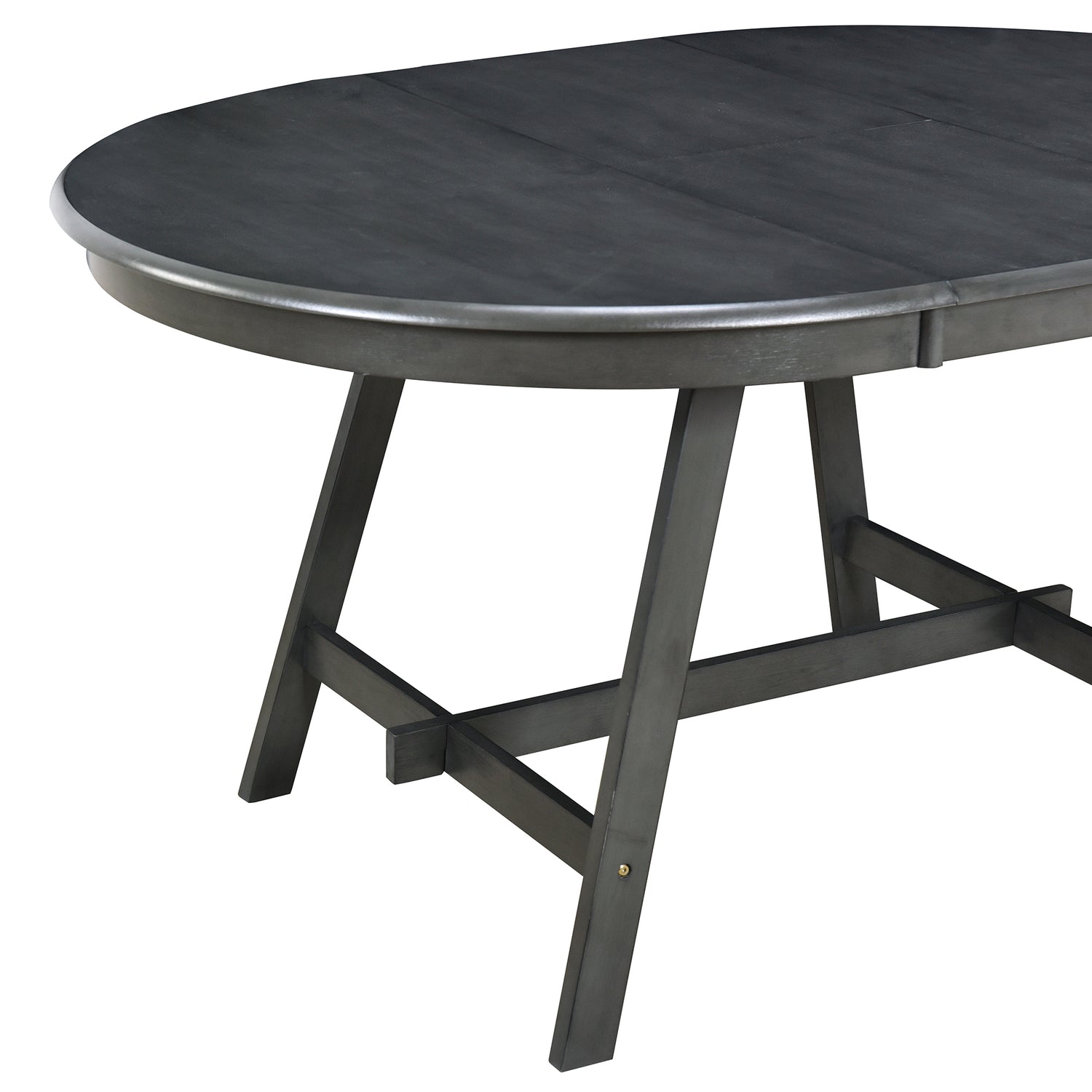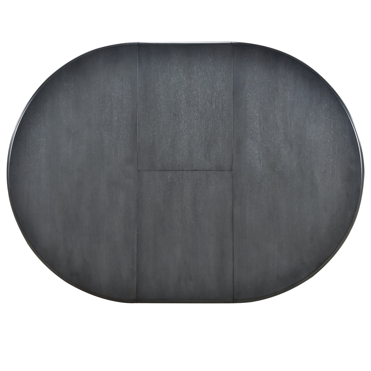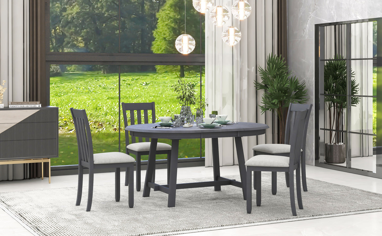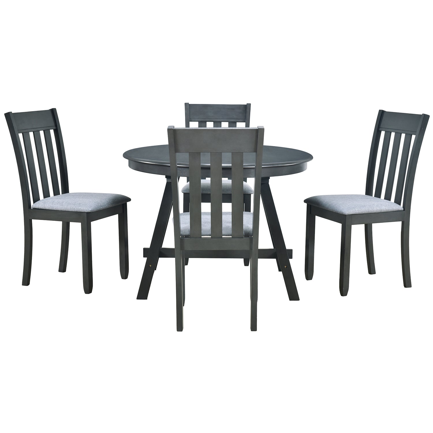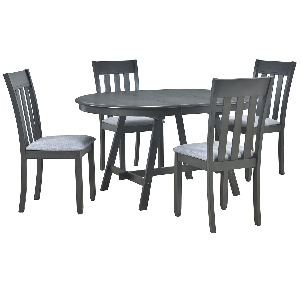 TREXM 5-Piece Wood Dining Table Set Round Extendable Dining Table with 4 Dining Chairs, Dining Room Table Set for 4 person for Dining Room (Gray)