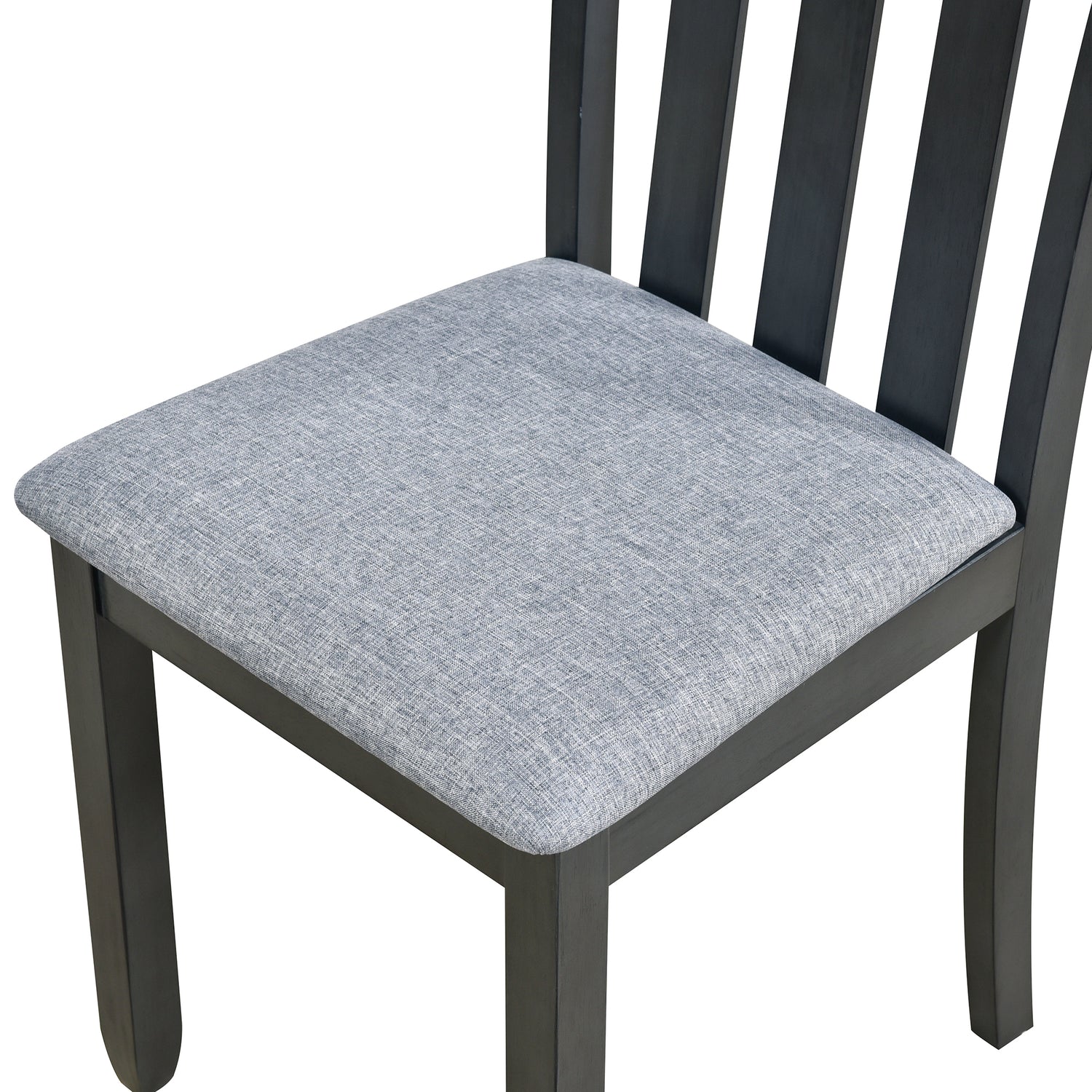 This set of tableware includes 1 table and 4 matching chairs, this multi-functional dining set seats up to 4 people, perfect for families to enjoy meal times together. This dining table set is marketed in two colors, gray and natural wood wash. The gray one match the gray cushion is suitable for minimalist home decor style or industrial home decor style. The natural wood wash one also matchs gray cushion is suitable for farmhouse home decor style.