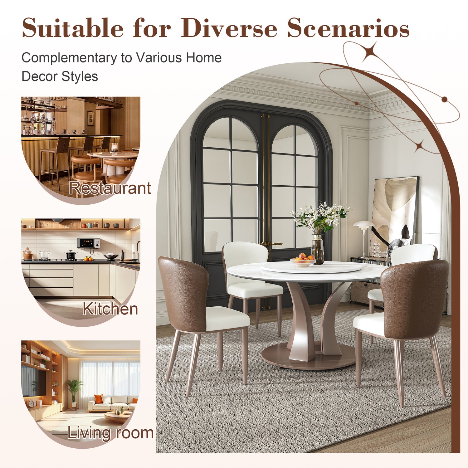 - 【53-Inch Scratch-Resistant Tabletop】53-inch wide round sintered stone tabletop with marble-like finish, coated and polished for exceptional scratch/stain resistance; comfortably seats 8-10 people. Rounded edges prevent accidental bumps and enhance safety during dining.