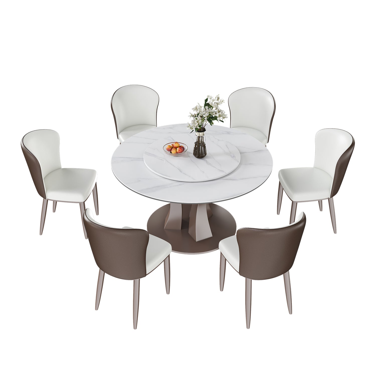 53' Round Dining Table with Rotating Tray - Scratch & Heat Resistant Sintered Stone Top for Kitchen & Restaurant(6 chairs)