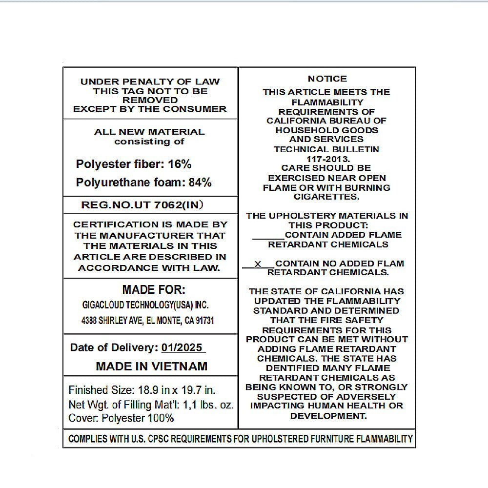 Chair 18.9'L x 22.8'W x 37.4'H, 14.9 LBS/PCS