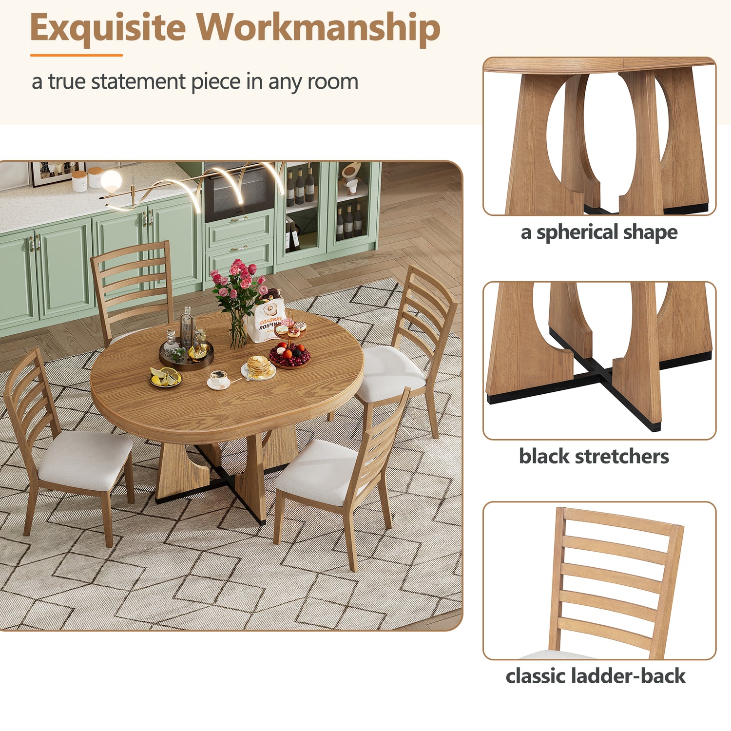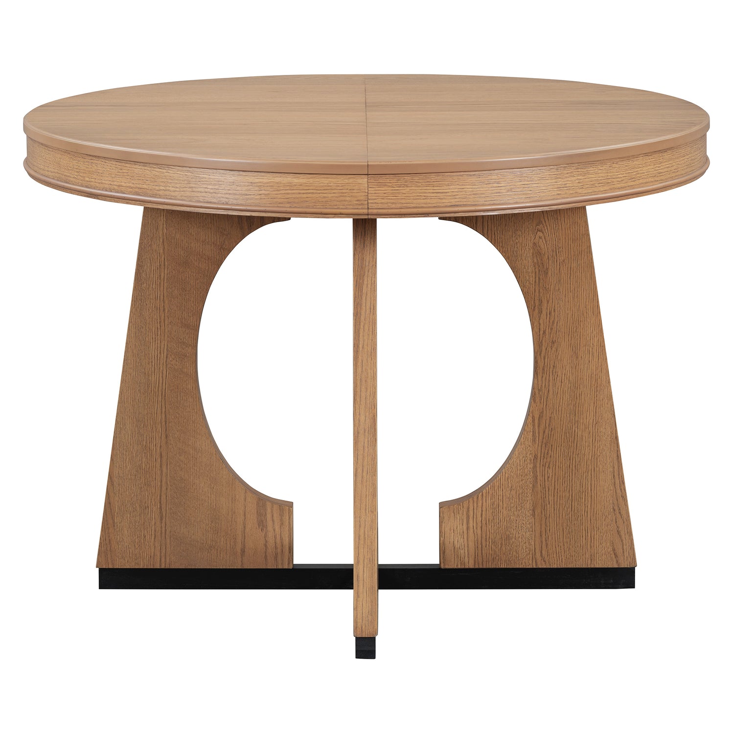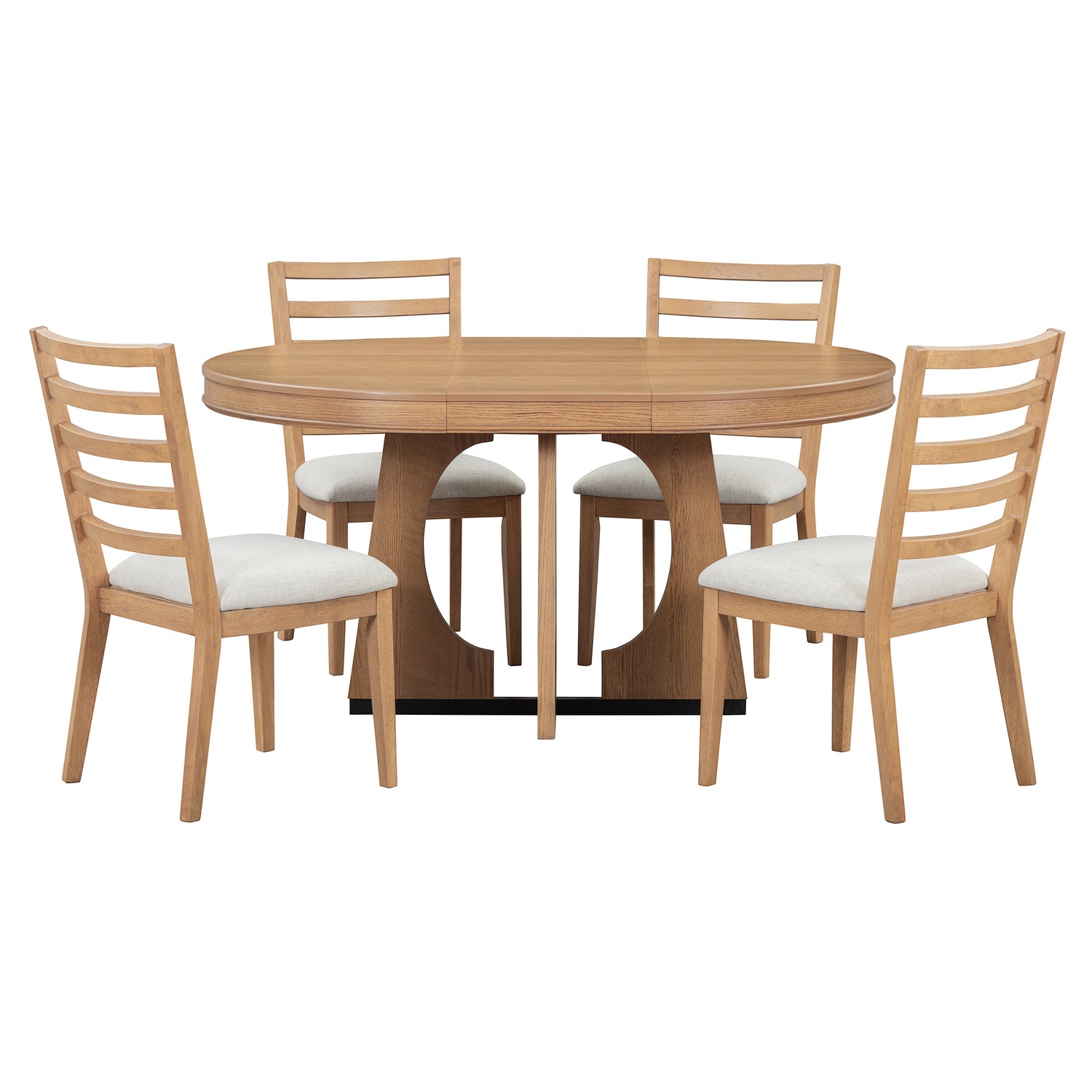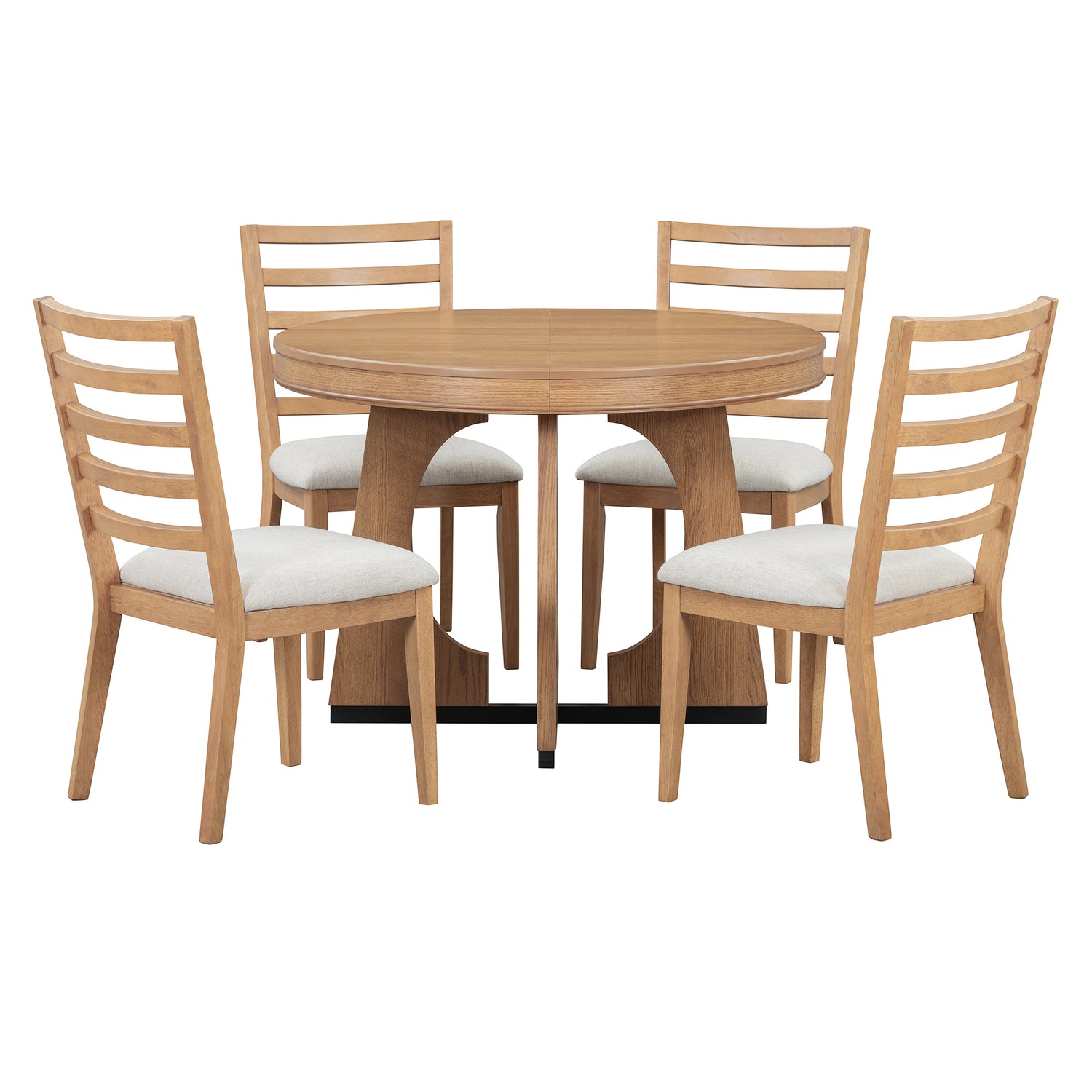 TREXM Round Dining Table for 4 with Chairs Set, Extendable Dining Table Set with 16' Removable Middle Leaf, 5 Piece Retro Dining Table Set Unique Geometric Design for Kitchen, Dining Room (Natural)