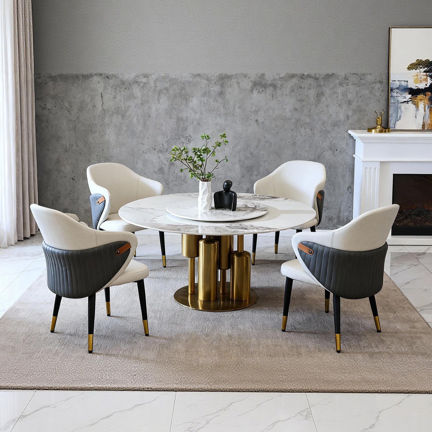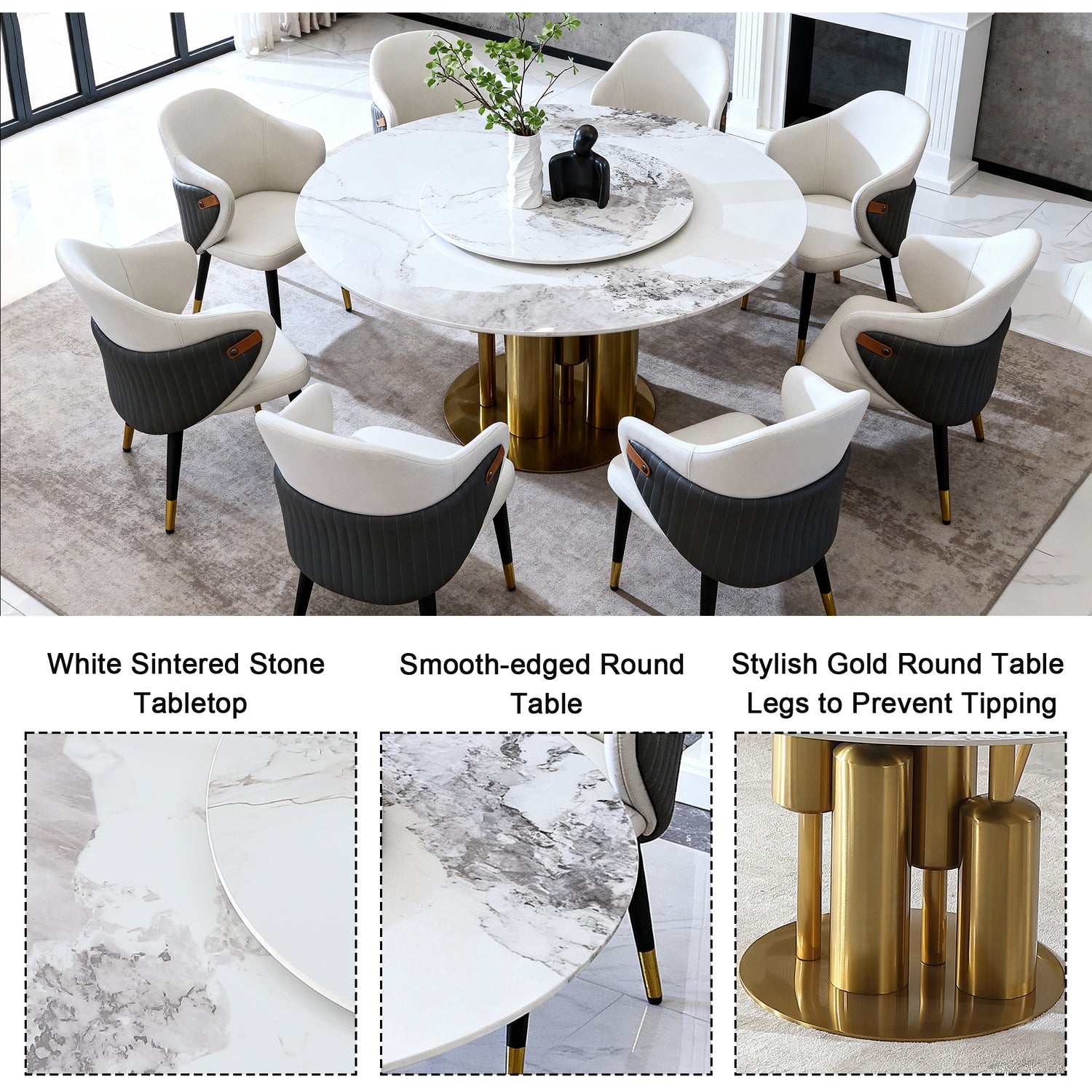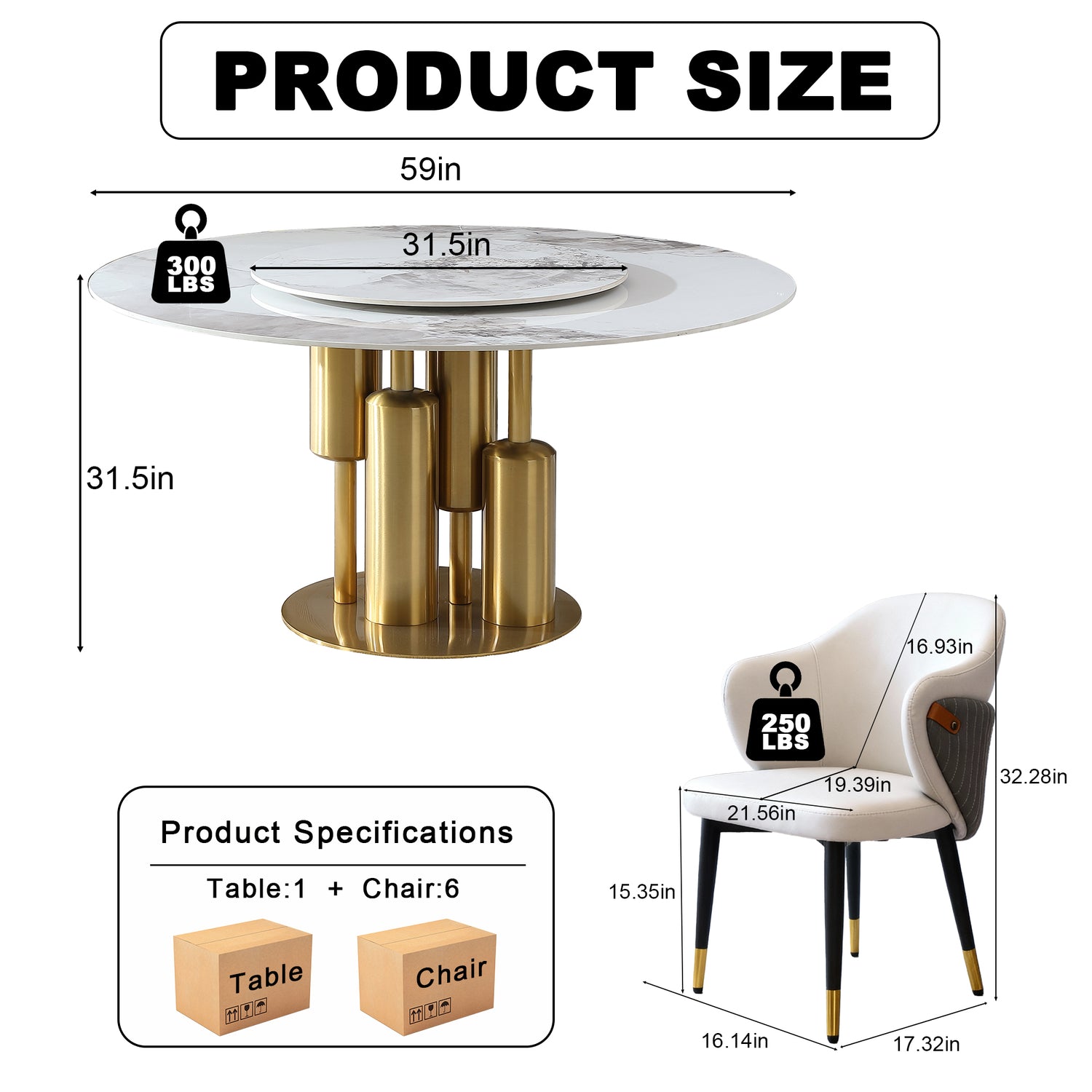 59' Round Dining Table with 360° Smooth Lazy Susan, Stain & Heat Resistant Sintered Stone Tabletop, Modern Minimalist Design for Kitchen, Dining Room, Compact Spaces(6 chairs) is available
