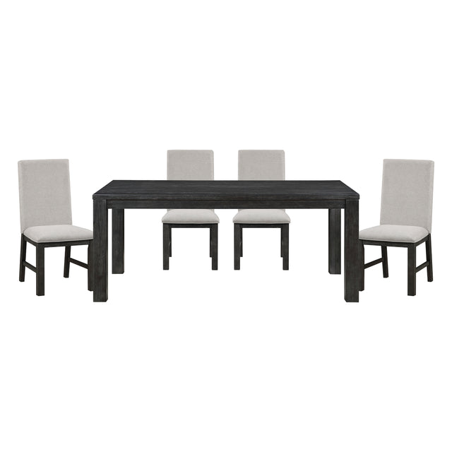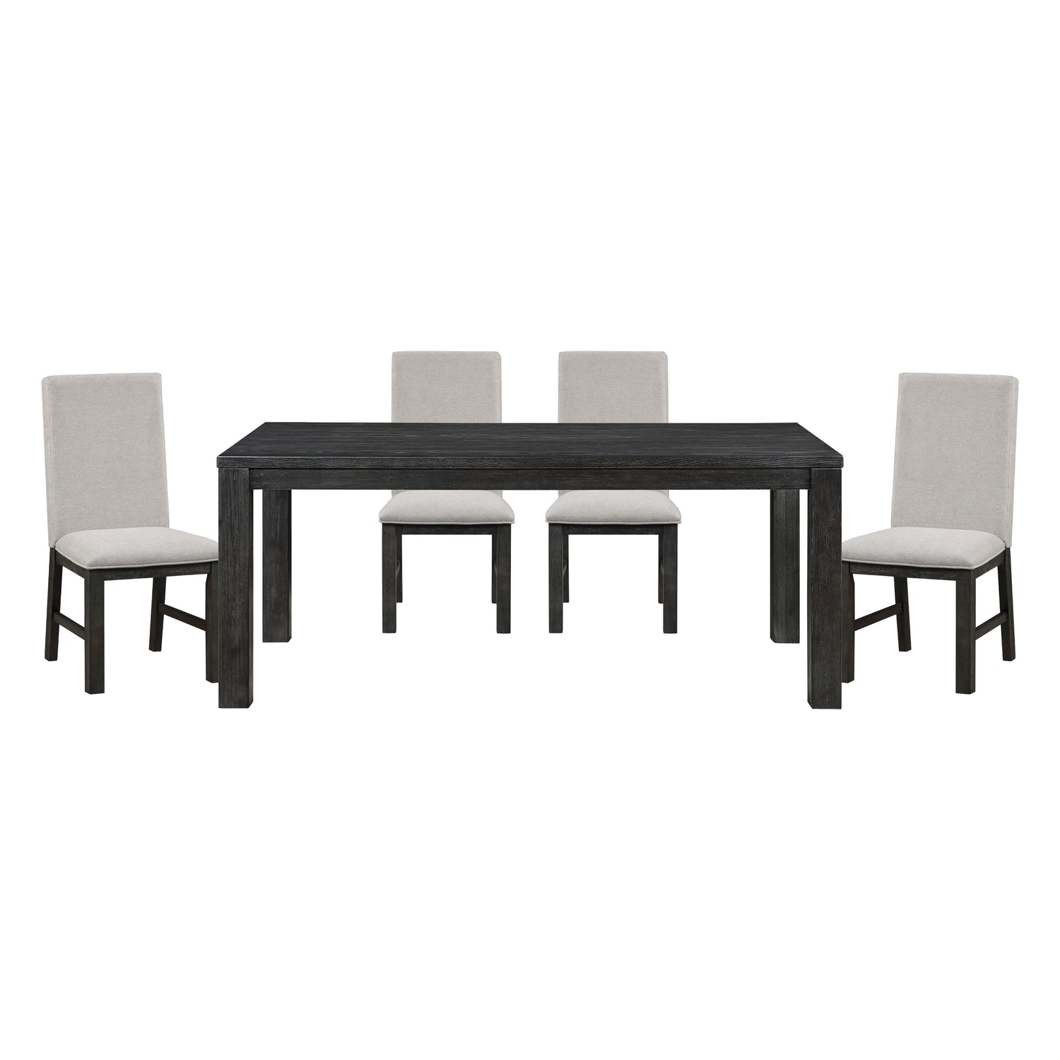 Antique Black Finish Modern Dining 5pc Set Rectangular Table and 4 Upholstered Chairs Textured Gray Wooden Dining Room Furniture