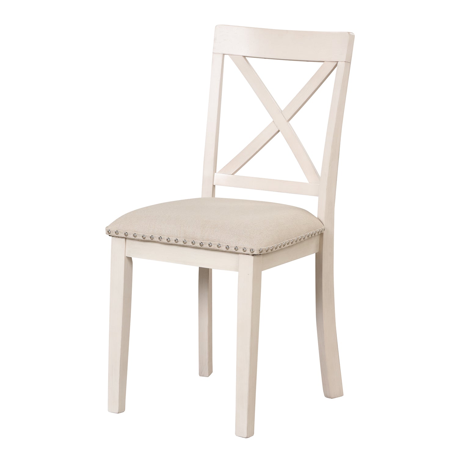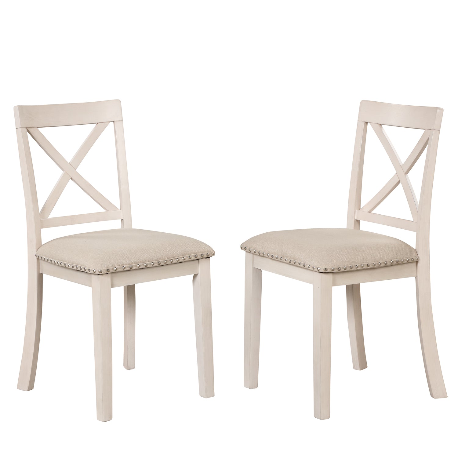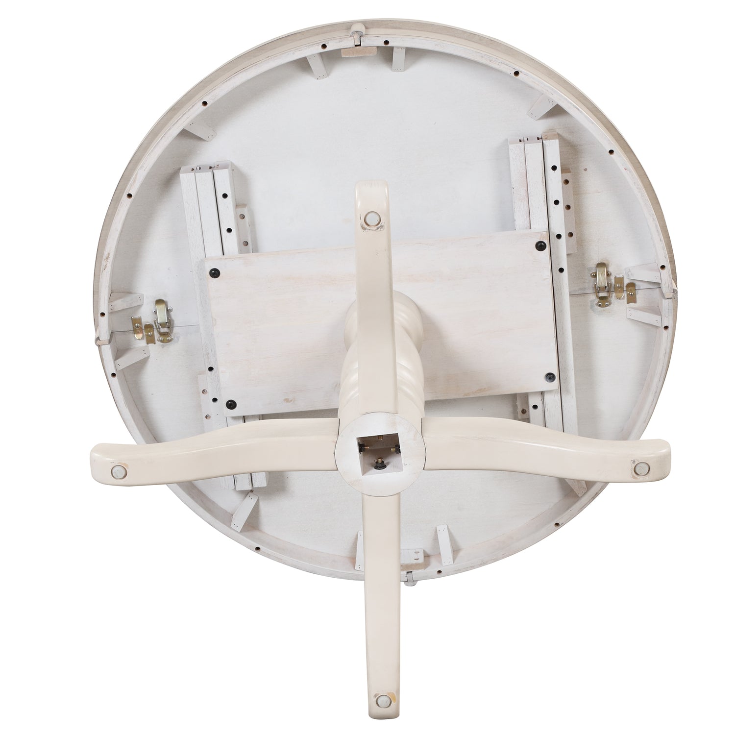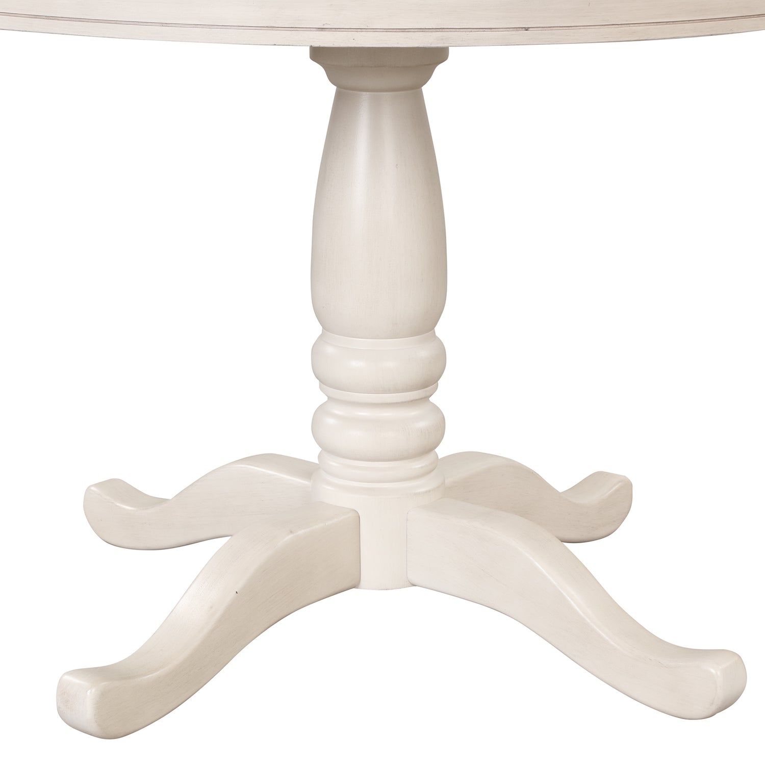 Antique White Modern Dining Table Set for 4 with Round Table and Chairs, Solid Wood & MDF