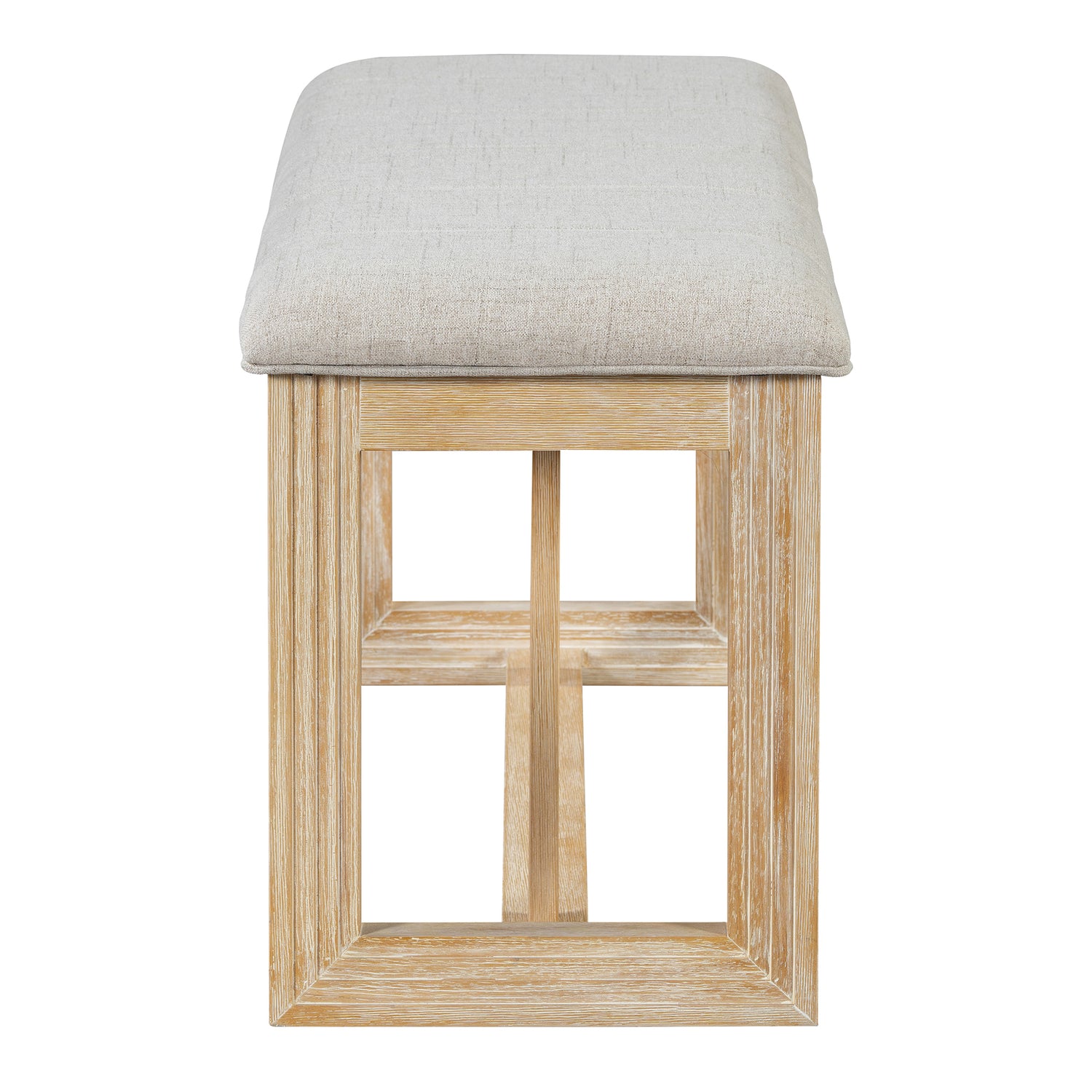 - Notable Details: The trestle bases of the table and bench are designed with a three-dimensional groove carving pattern, which is complemented by the square symmetrical carving of the backrests of the chairs. At the same time, the stitching on the surface of the bench cushion makes the already-filled cushion look even fuller and more comfortable. In short, our elegant dining set features a cohesive design that enhances any dining room decor, creating a warm and inviting ambiance.