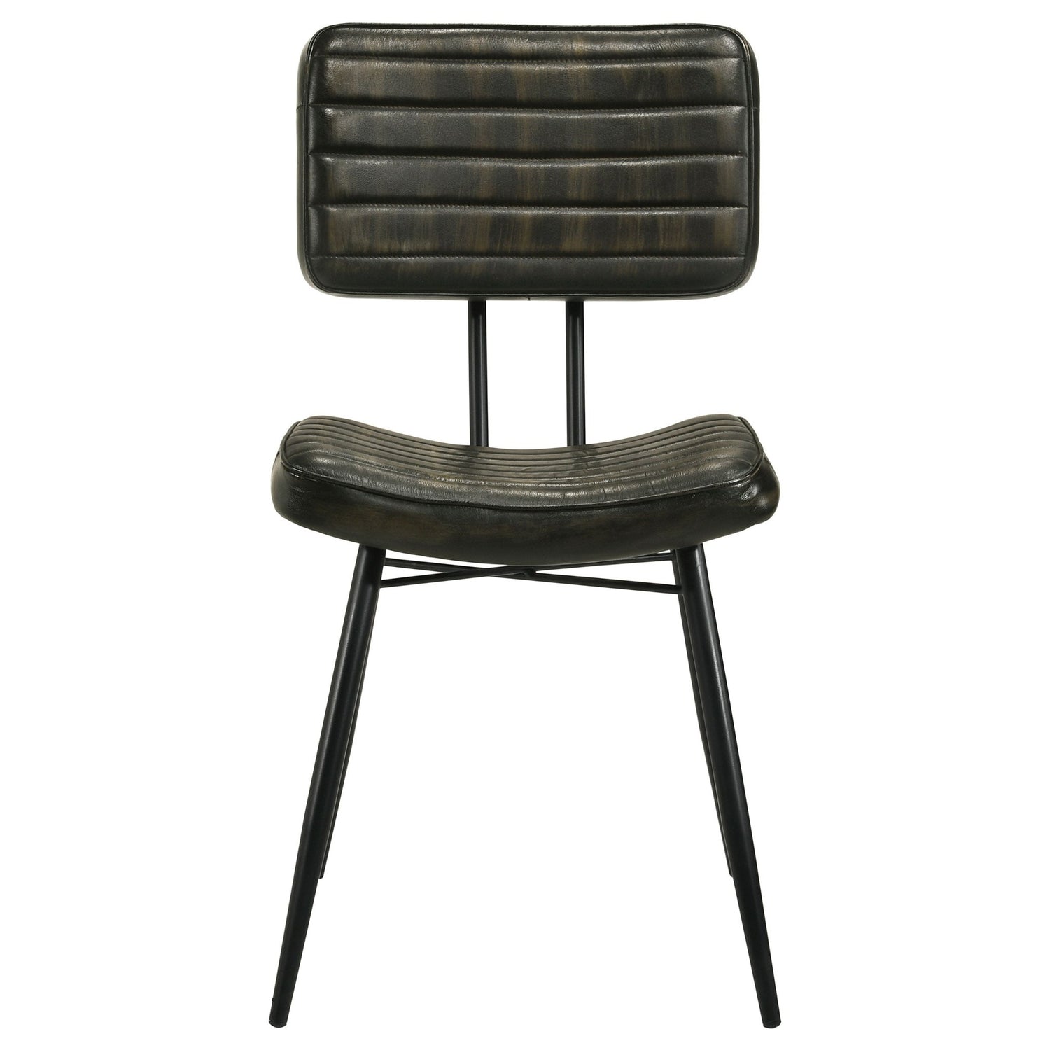 - Retro charm is displayed in a five-piece casual dining set with a rectangular wood and iron dining table, four side chairs and bench with channeled tufting upholstery
