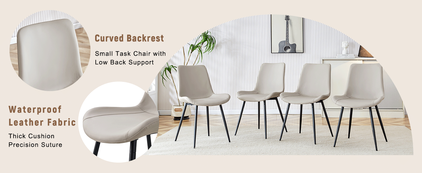 - Soft Embrace of Artificial Leather Chairs: The warm gray artificial leather chair seats, with an integrated seat and backrest, offer a warm embrace, making every sit a moment of enjoyment.Comfort of Wider Cushions: The curved and wider cushion design is like a gentle cradle, providing unparalleled comfort during meals.
