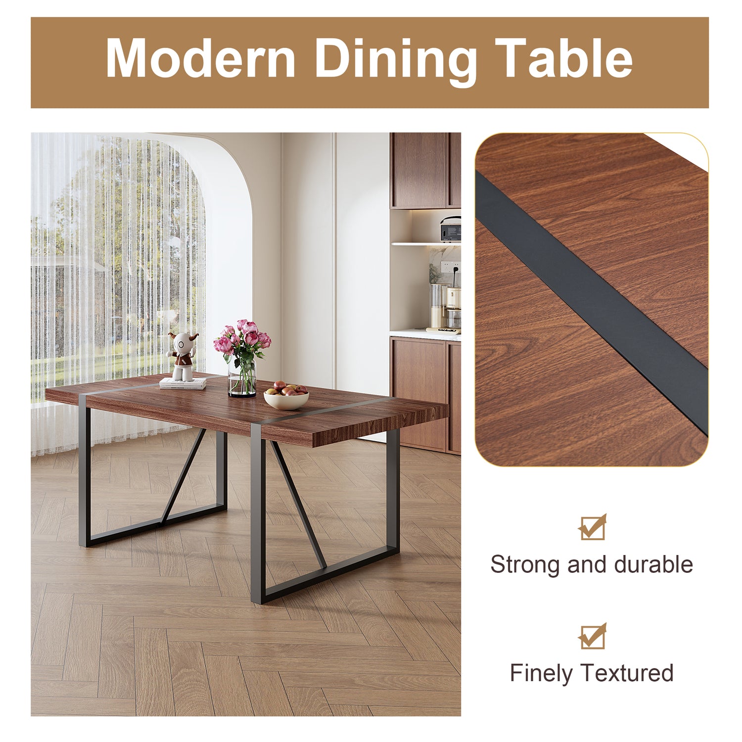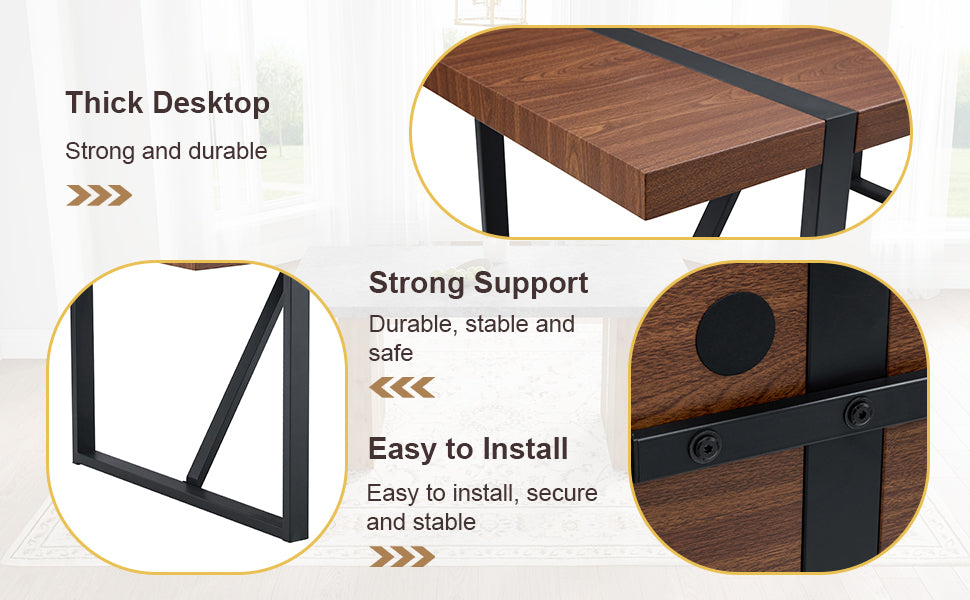 - Fusion of Modern and Retro: This dining table perfectly blends modern industrial style with retro walnut color, suitable for home decor that pursues personality.Industrial Style Design: This dining table features a walnut-colored MDF tabletop with black metal frame legs, perfectly capturing the industrial style.