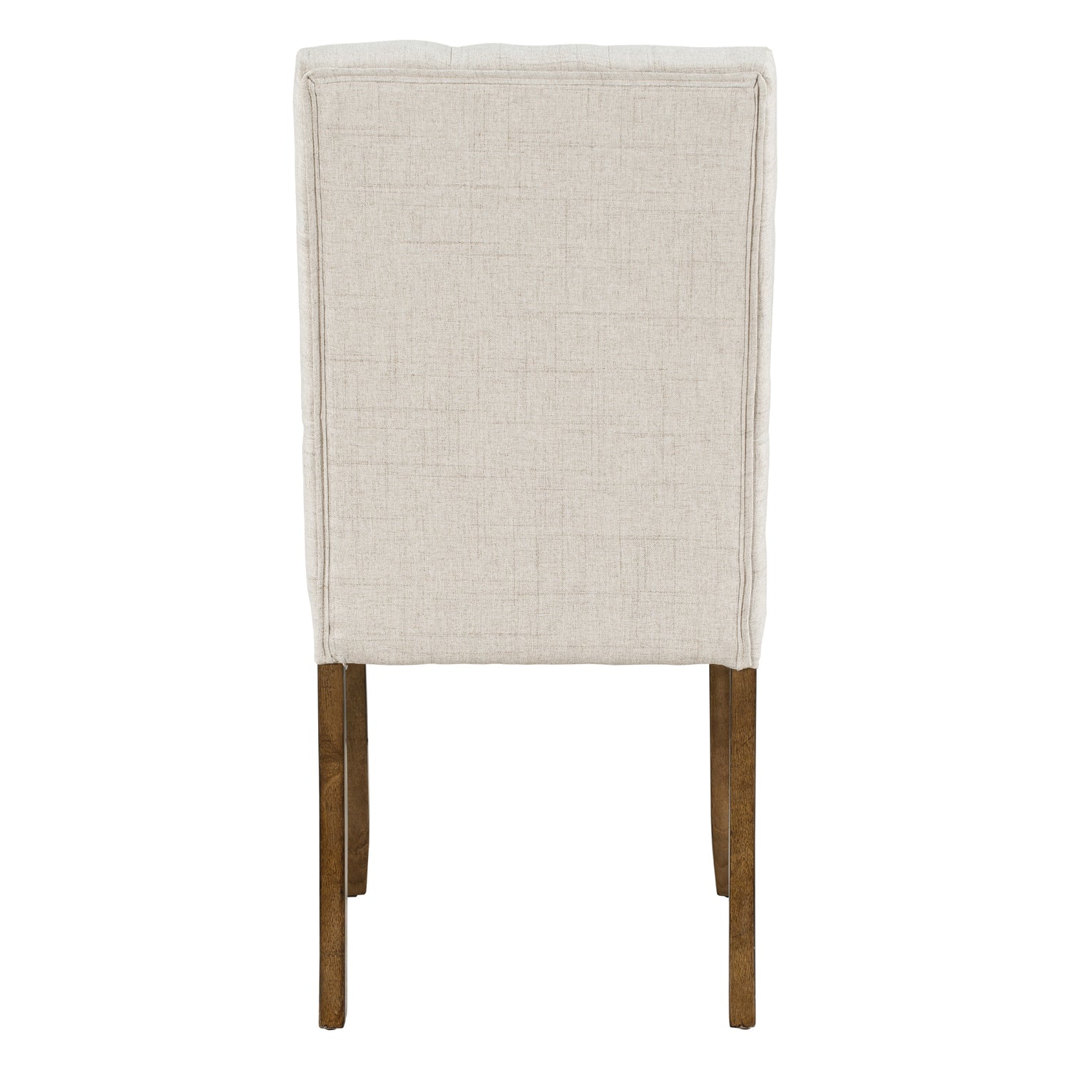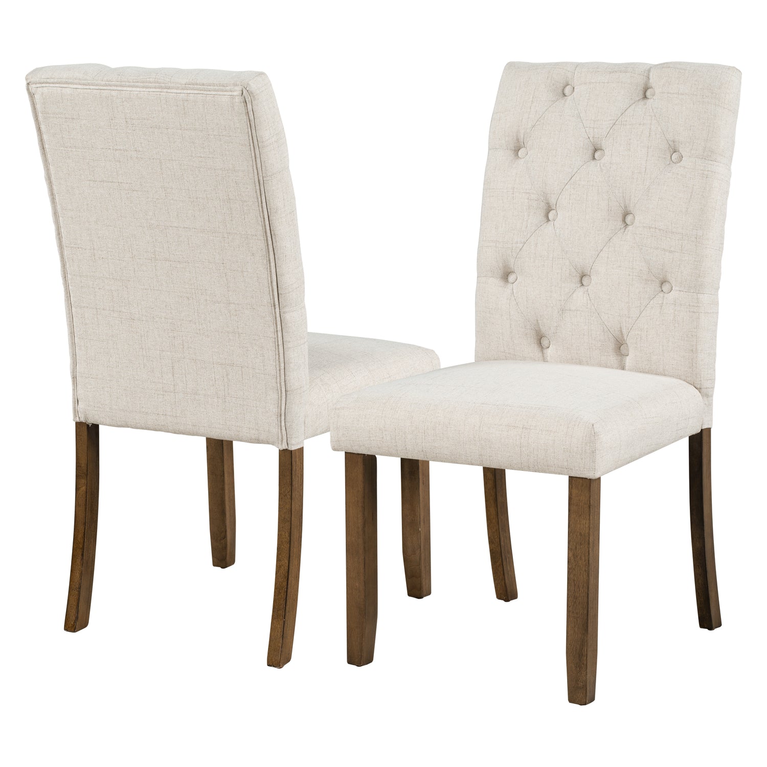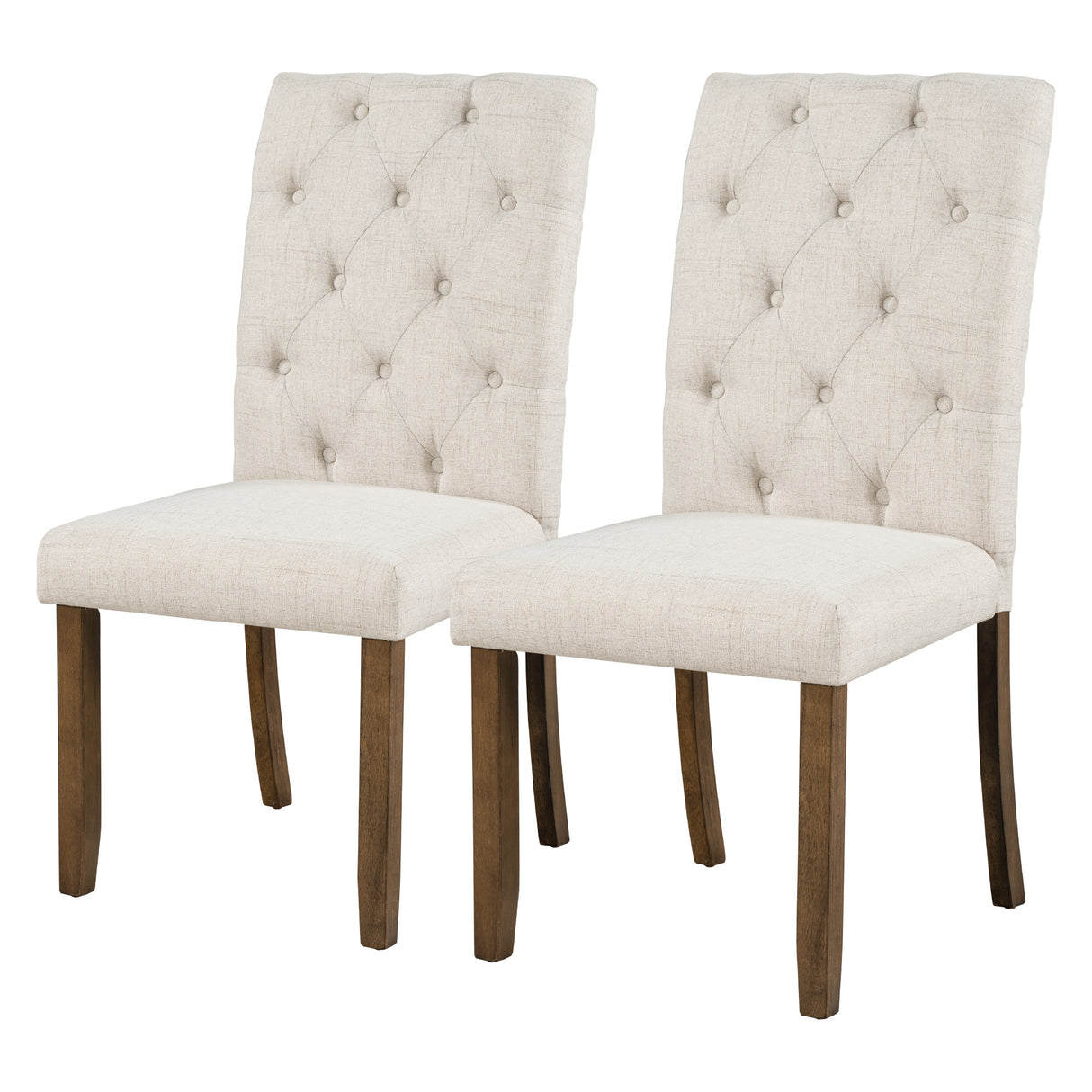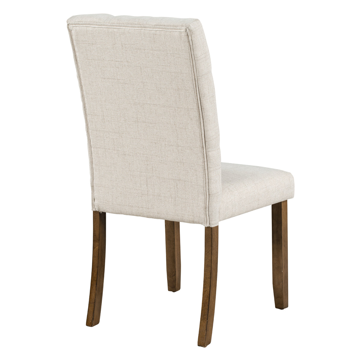 The chairs showcase high backs, linen upholstered seats, and button-tufting for a classic look. The chair's ergonomic curved back and 4.3" thickness soft cushion, matching a 48" length bench, provide a comfortable experience in daily usage. The load-bearing capacity of chair and bench are 250lbs.