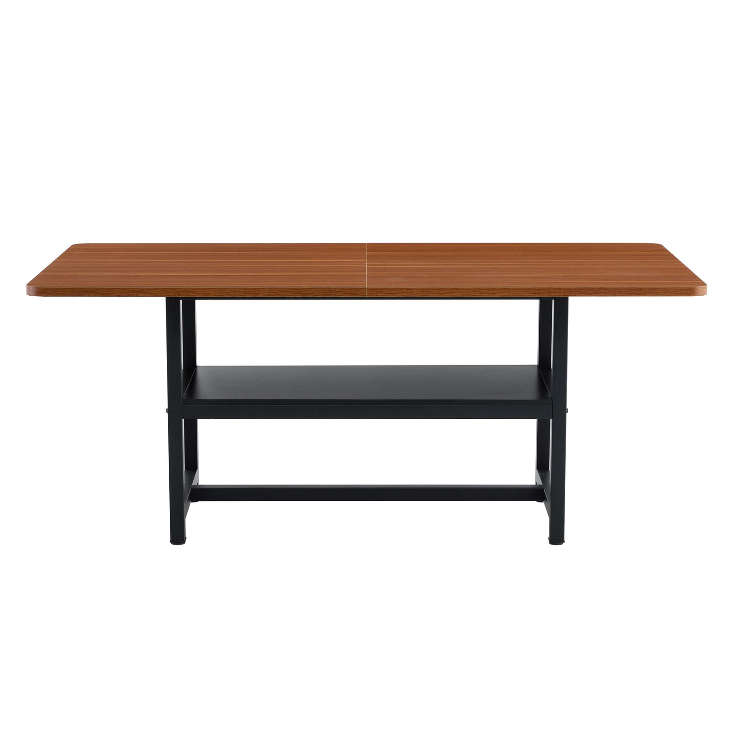 Table and chair set.71*35.4 inch fashionable walnut grain dining table, a practical choice to add color to the home.Paired With 8 Comfortable Technology-Fabric Brown Chairs With Black Metal Legs.