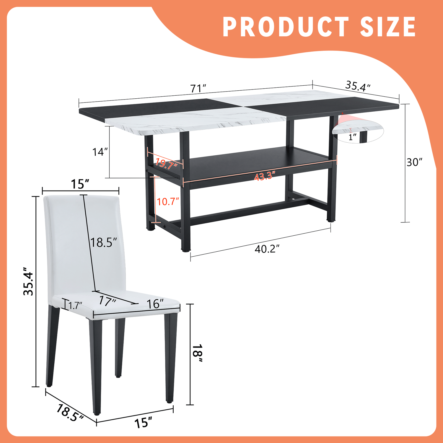 - Unique desktop: The desktop is made of MDF material, cleverly spliced with white and black to create a vivid visual contrast. The 1-inch thick tabletop not only has a rich texture, but also effectively resists scratches and wear during daily use, and is easy to clean.