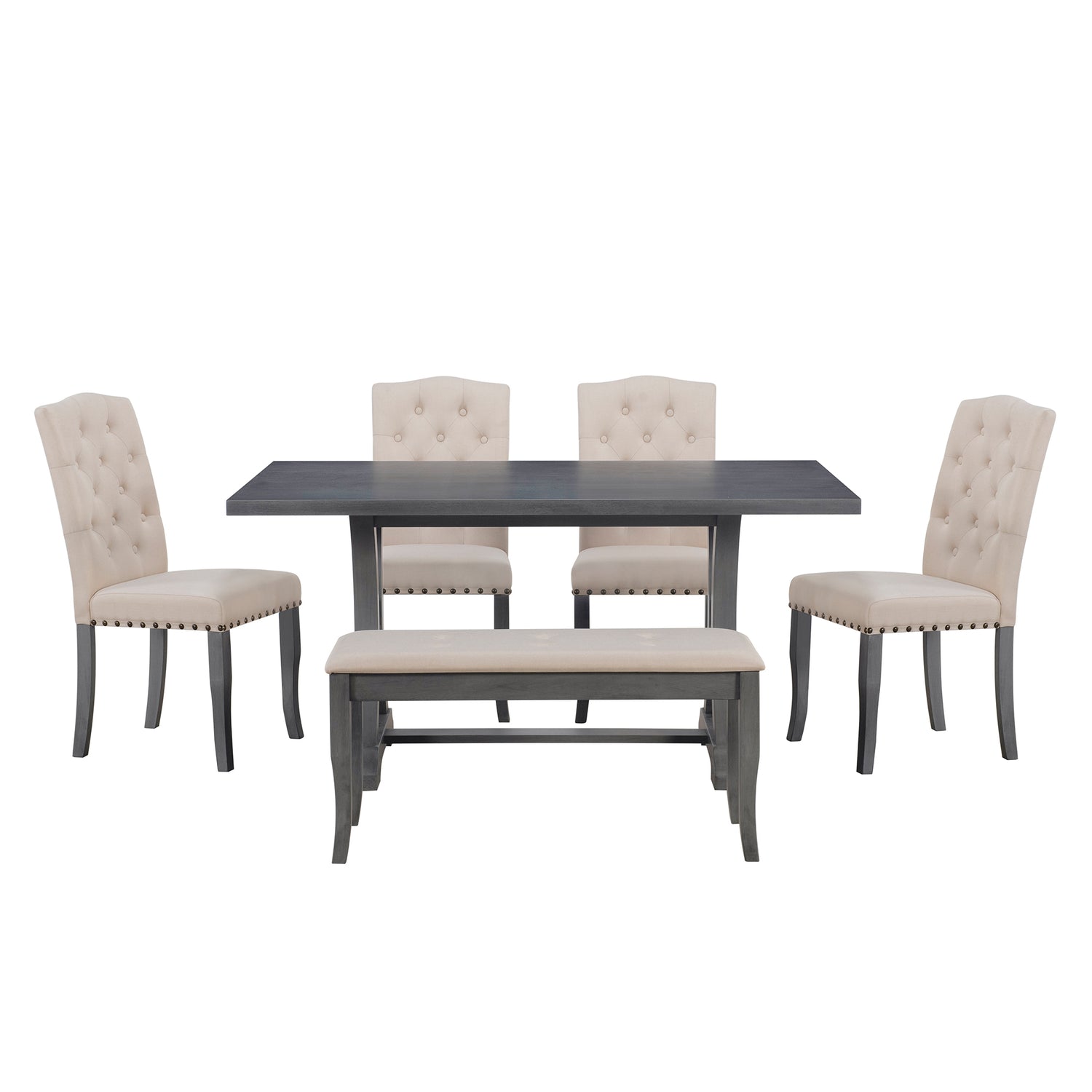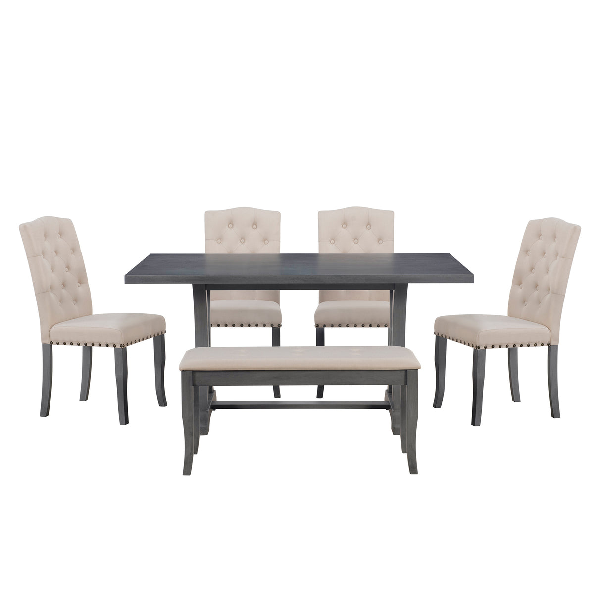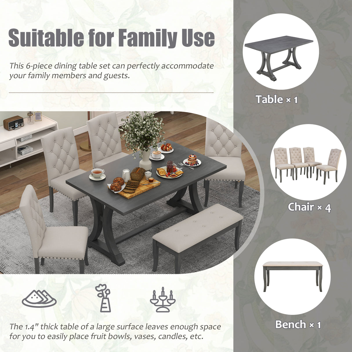 TREXM 6-Piece Farmhouse Dining Table Set, Rectangular Trestle Table and 4 Upholstered Chairs & Bench for Dining Room (Antique Gray) is available