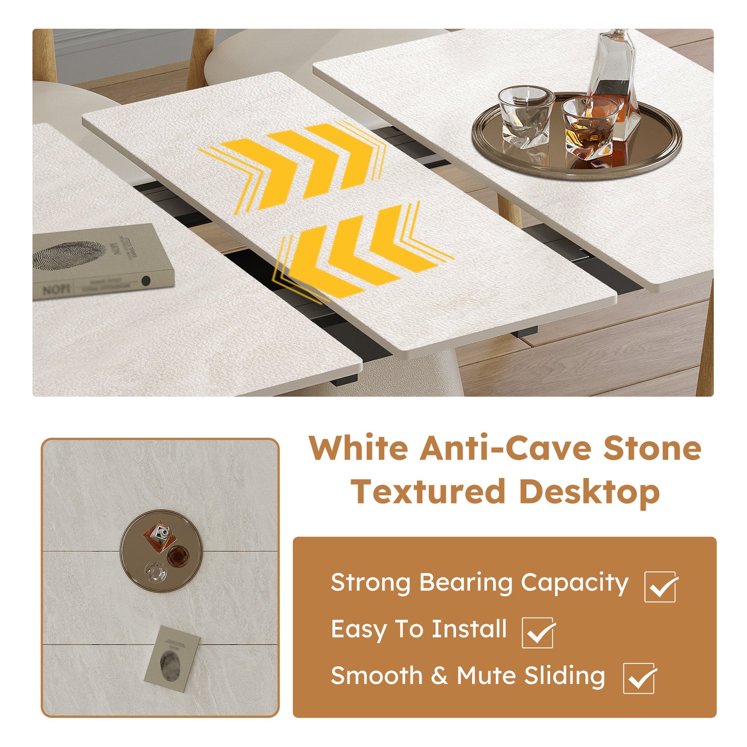 - Premium Retractable Rock Slab Table with Modern Functionality:This innovative dining table features a durable rock slab surface and smooth retractable mechanism that effortlessly adjusts to accommodate varying needs. The combination of industrial-grade materials and intelligent design creates a centerpiece that balances aesthetics with practical daily use.