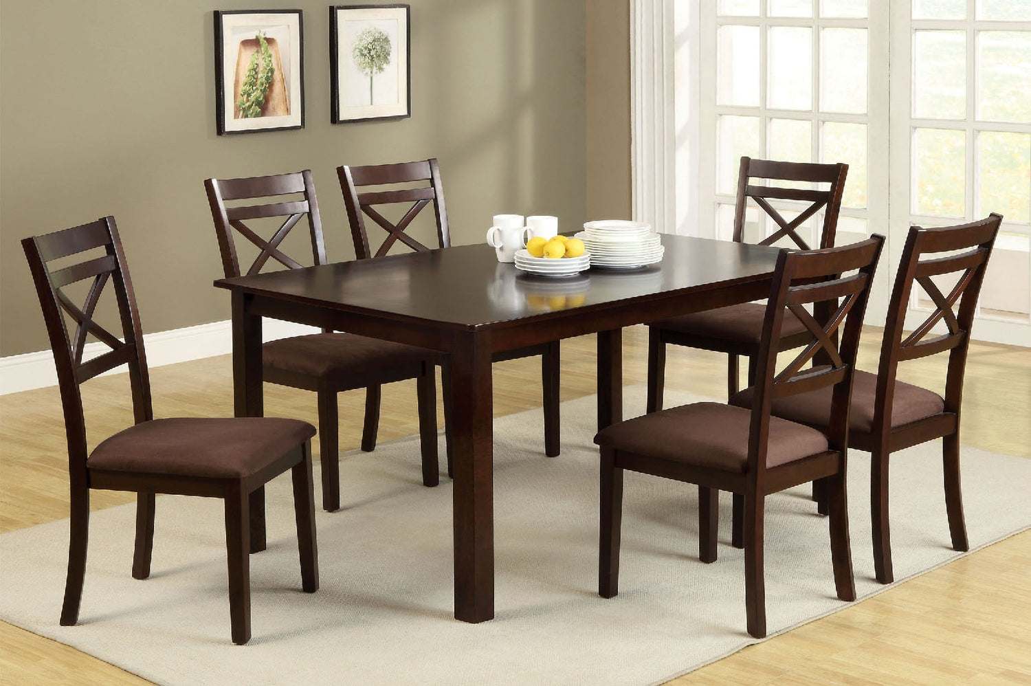 Transitional Style 7pc Dining Table Set 1x Table 6x Chair Microfiber Padded Seat Cross Back Seat Espresso Finish is available