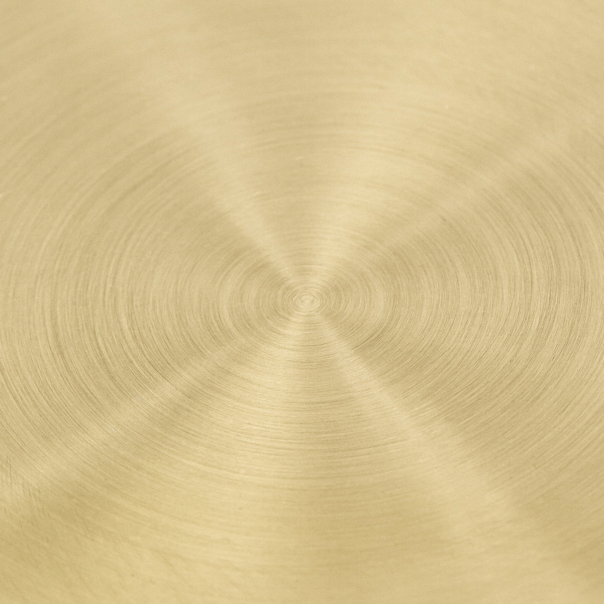 - Metal pedestal with cutout “flame” design in Chardonnay