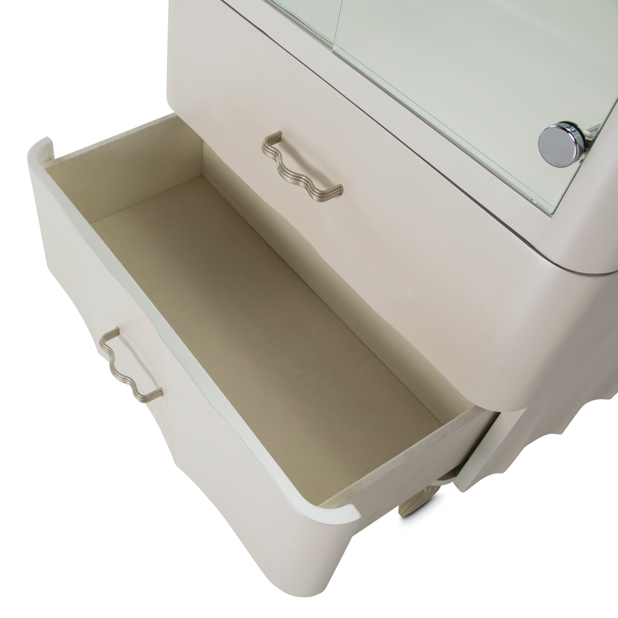 - Creamy Pearl finish with Platinum framing accents