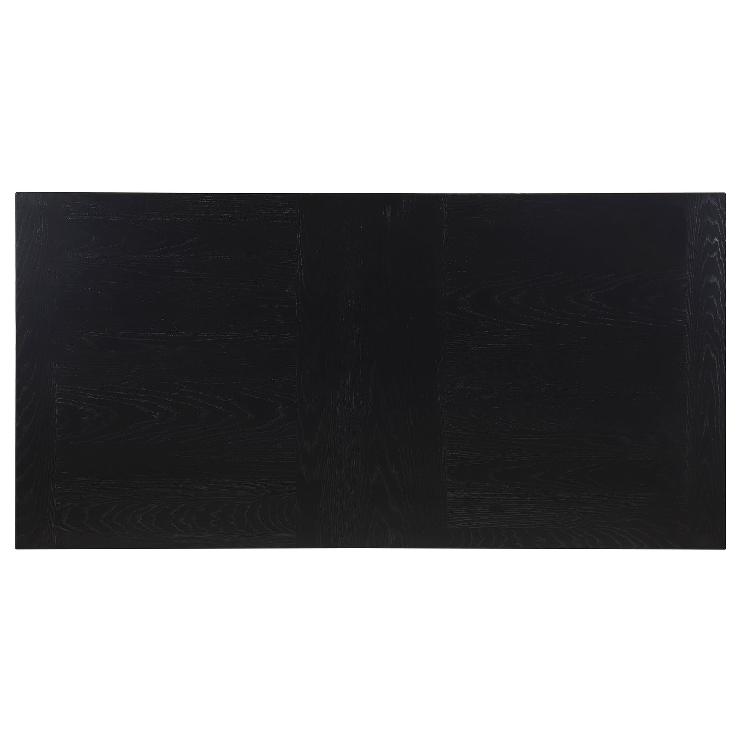 - Dining table features a rich oak veneer top with a sleek black finish, blending natural warmth with contemporary style