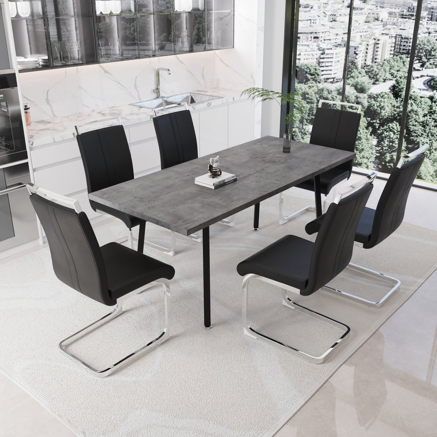 - 7.Minimally comfortable dining table set with 6 chairs: Our seats are ergonomically designed, and even if you sit for a long time, the thick cushions won't make you tired. The backrest is filled with a large amount of doll cotton, providing comfortable support for the back.