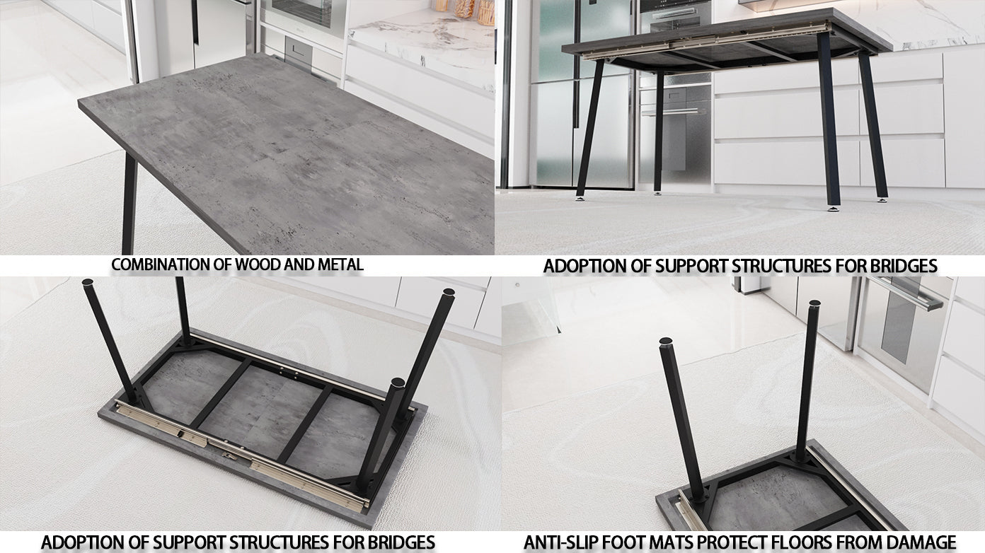 - 2.Expandable dining table: When having dinner with family, a part of the table can be hidden, allowing for intimate and warm dining with family. During parties, it can be easily expanded to accommodate 4-6 people, and the space under the dining table is spacious, making it a very practical functional dining table.