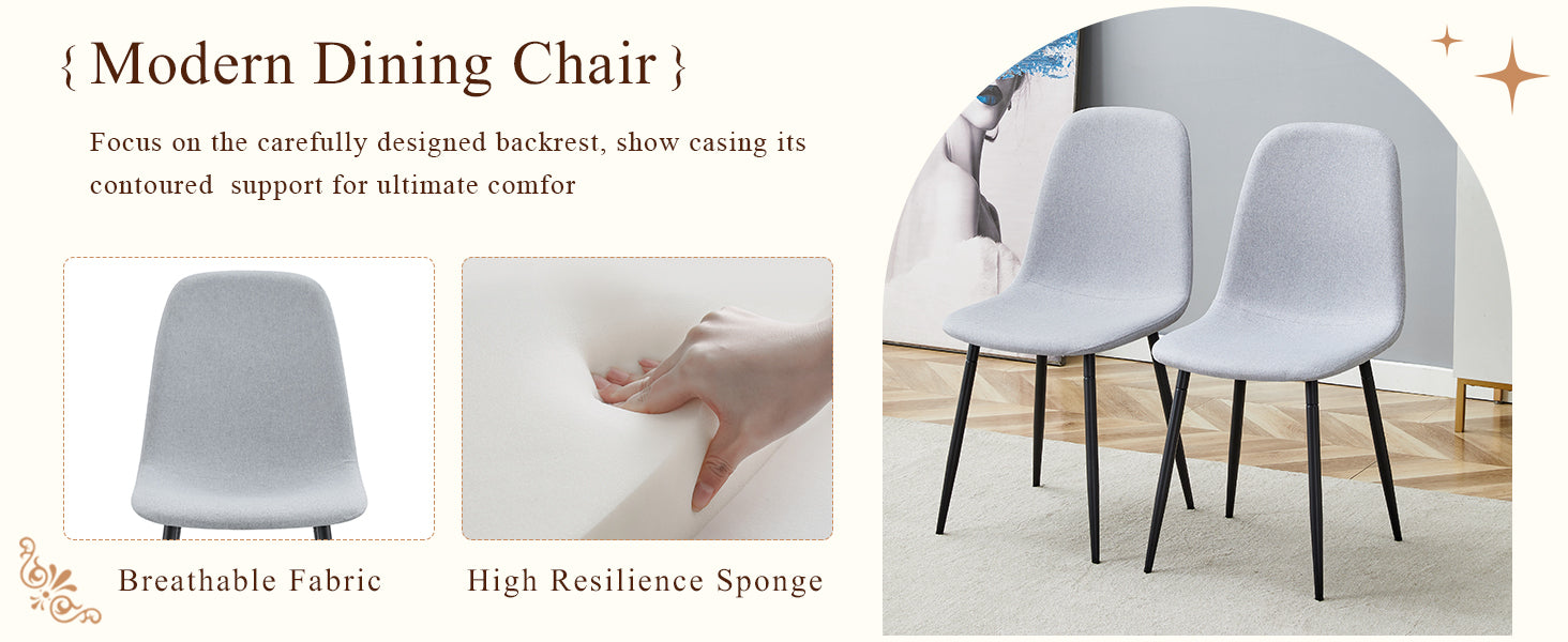 - Linen-Cotton Material: The chairs are made of light gray linen-cotton, naturally breathable, offering excellent comfort.Easy to Clean: The linen-cotton material is easy to clean and maintain, keeping the chairs fresh and new.