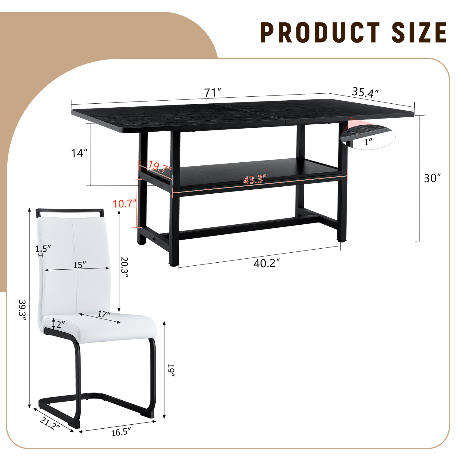 - Unique desktop: The desktop is made of MDF material, cleverly spliced with black grain to create a vivid visual contrast. The 1-inch thick tabletop not only has a rich texture, but also effectively resists scratches and wear during daily use, and is easy to clean.