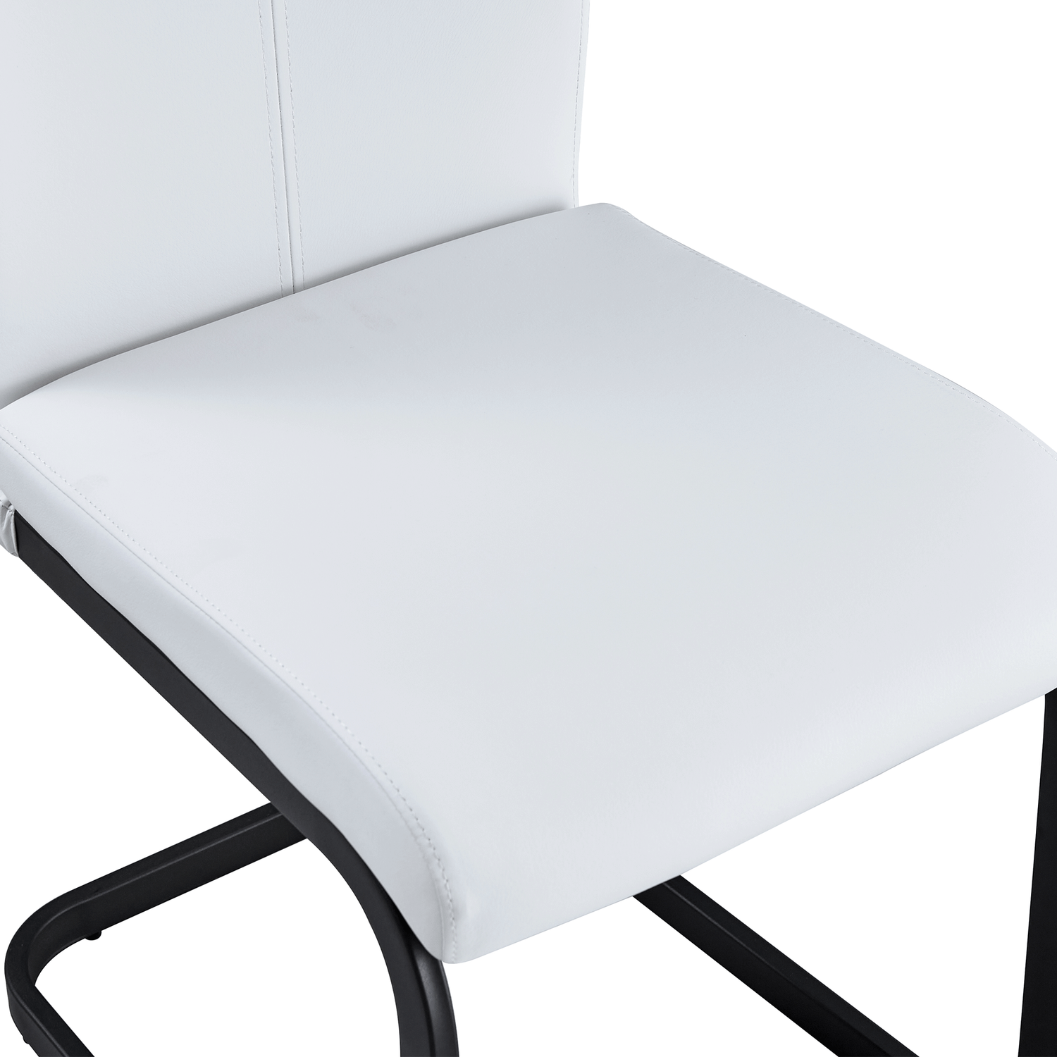 - The accompanying chairs are designed in white color, with black metal chair legs, simple yet luxurious.High-quality PU seats, soft and comfortable. The PU seat cushion has good elasticity and softness, providing a comfortable sitting experience and is suitable for long-term use. At the same time, PU material is wear-resistant, age-resistant, and easy to clean.