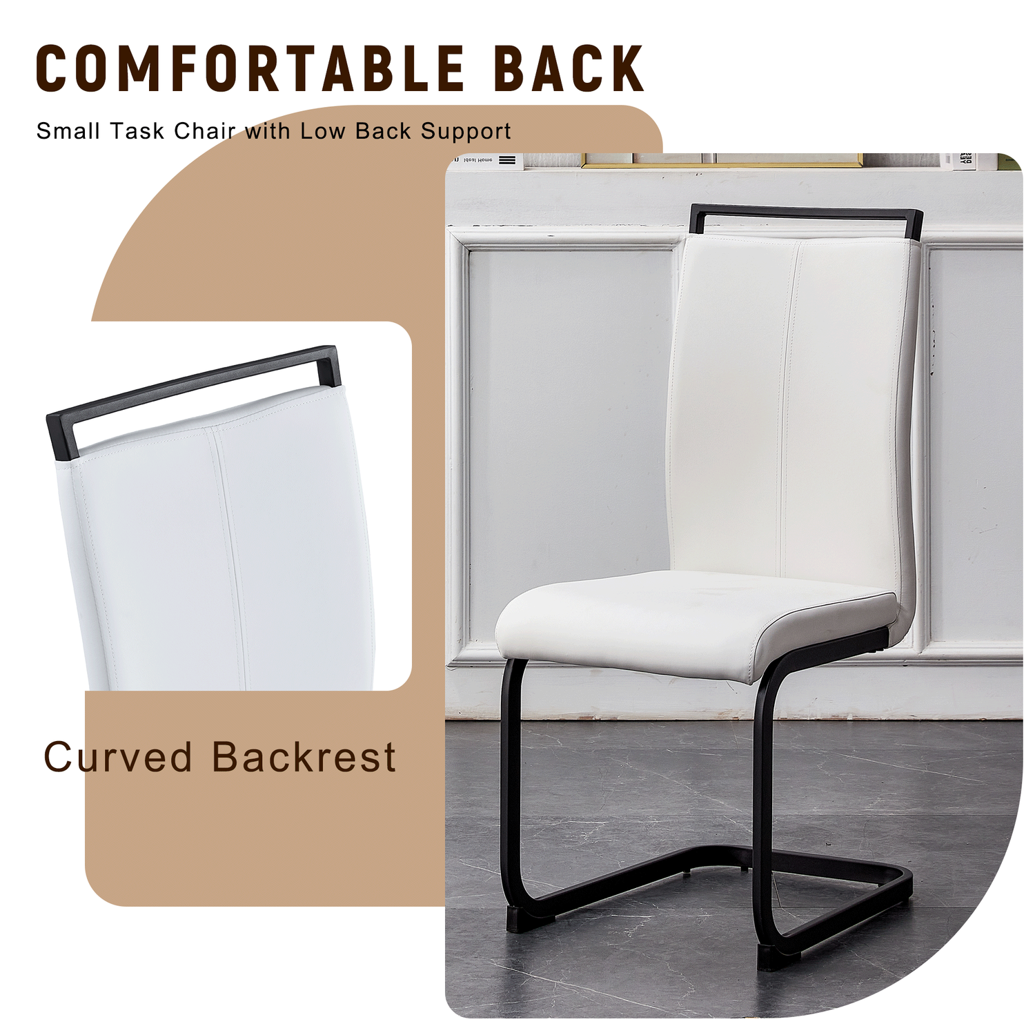 - Stable Arched Metal Legs: The black arched metal legs not only add a sense of design but also provide strong support, ensuring the stability and durability of the chair.Anti-Slip Protective Feet: The anti-slip feet design at the bottom of the chair legs protects the floor from scratches and increases the safety of the chair during use.