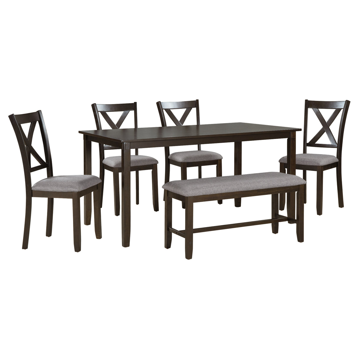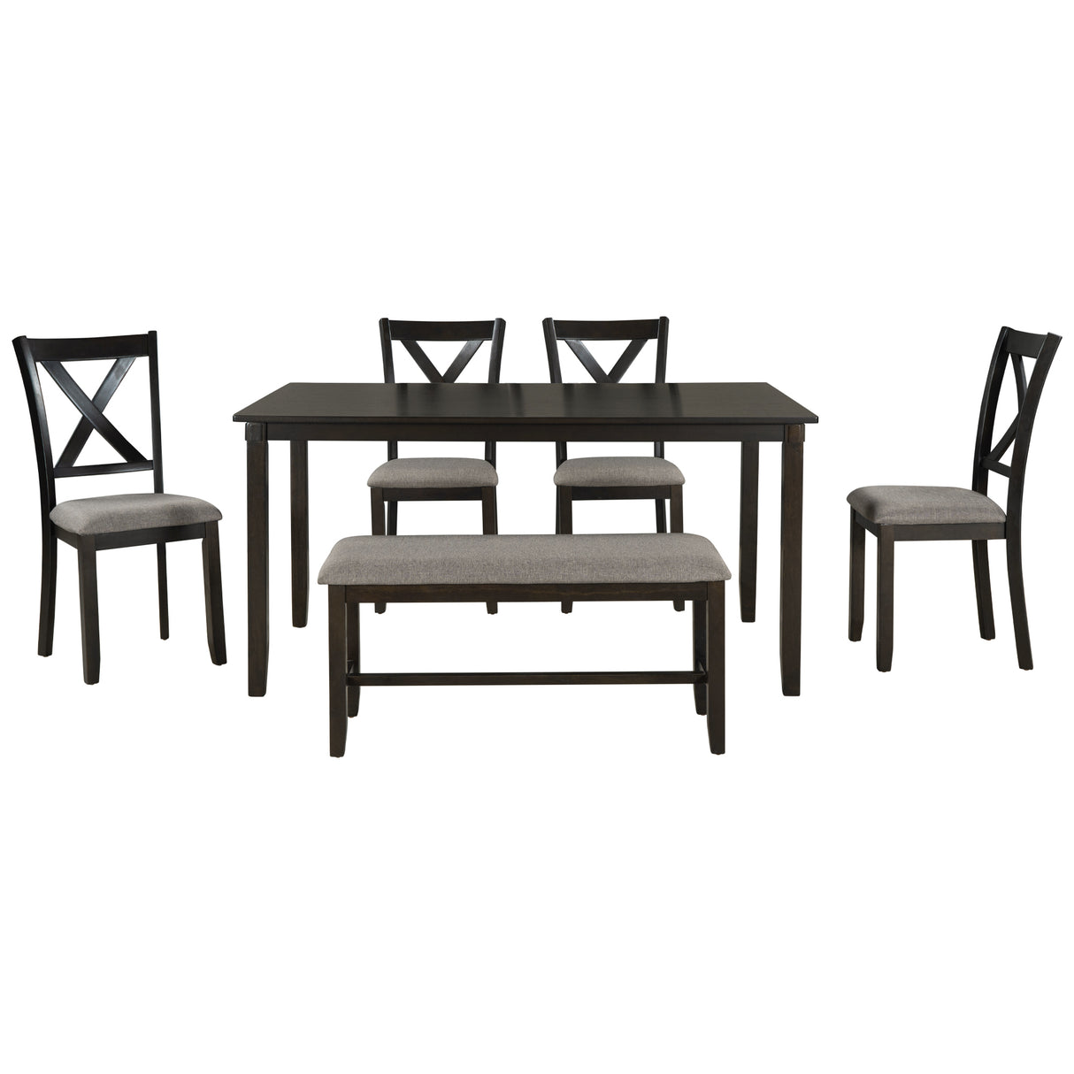 TREXM 6-Piece Kitchen Dining Table Set Wooden Rectangular Dining Table, 4 Fabric Chairs and Bench Family Furniture (Espresso) is available