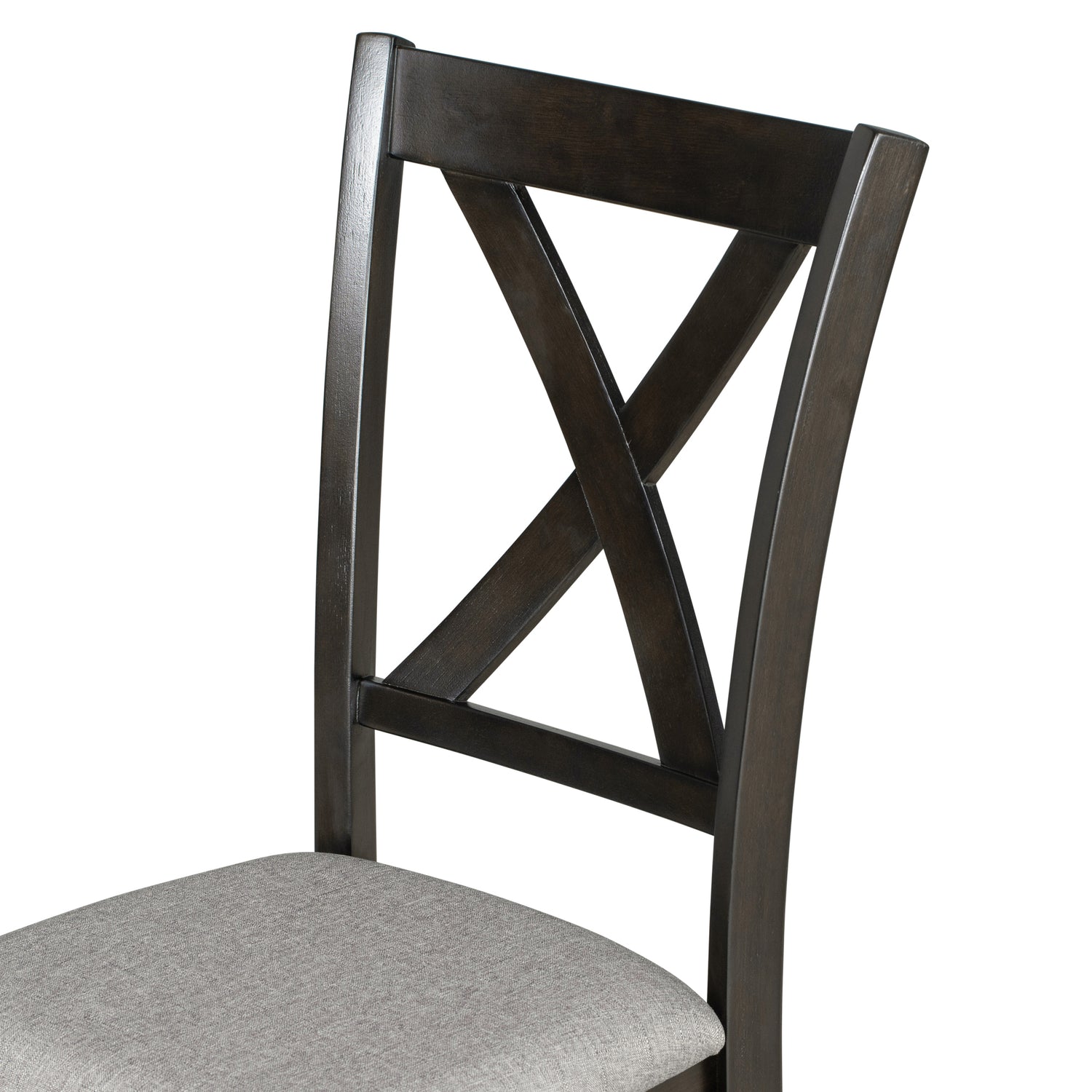 TREXM 6-Piece Kitchen Dining Table Set Wooden Rectangular Dining Table, 4 Fabric Chairs and Bench Family Furniture (Espresso)