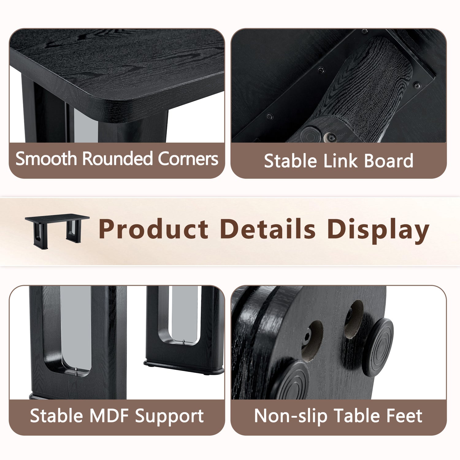 - Unique table leg design: The hollow part between the two U-shaped table legs is embedded with transparent gray glass, which is 19 inches high. While adding transparency, the gray glass and black wood texture complement each other, creating a unique and elegant atmosphere, visually more layered.