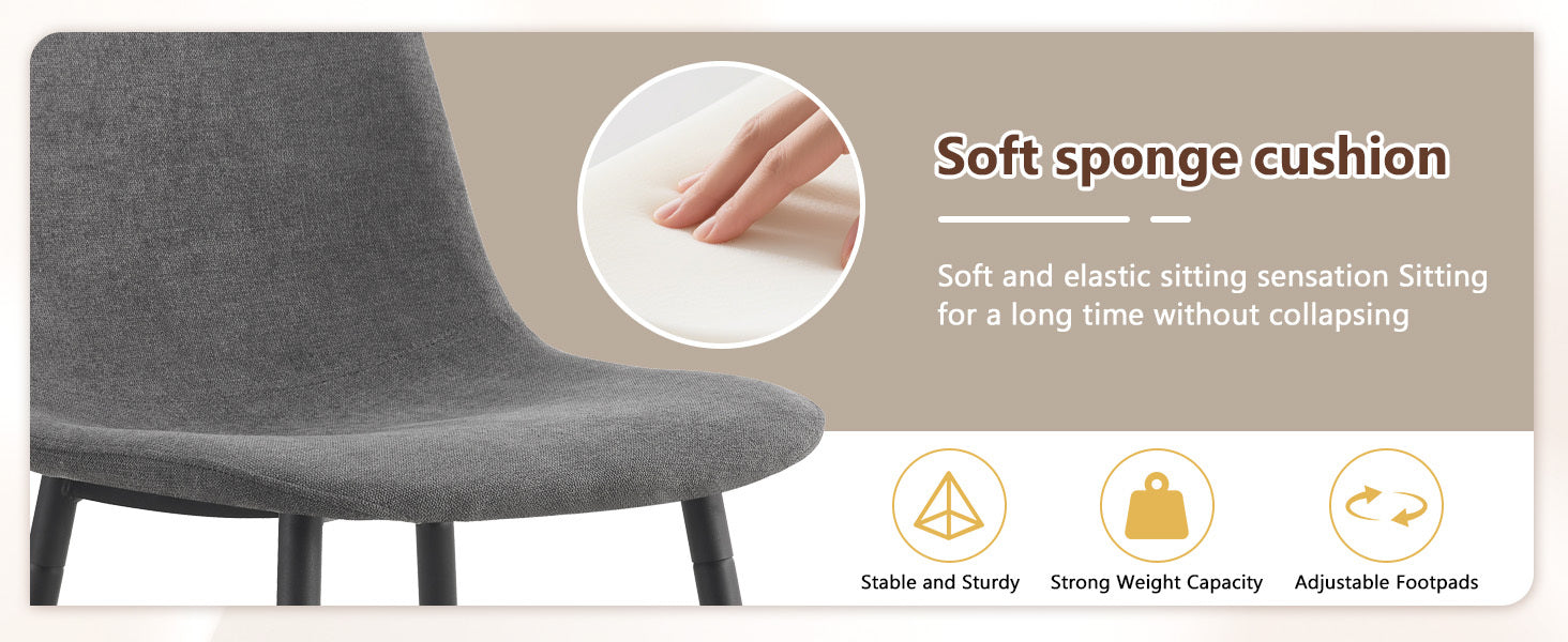 - Dark Grey Linen-Cotton Texture: The dining chairs are made of dark grey linen-cotton fabric, with integrated seat and backrest design, solid color style, breathable and soft comfort,offering a warm and comfortable touch while presenting an elegant home atmosphere.