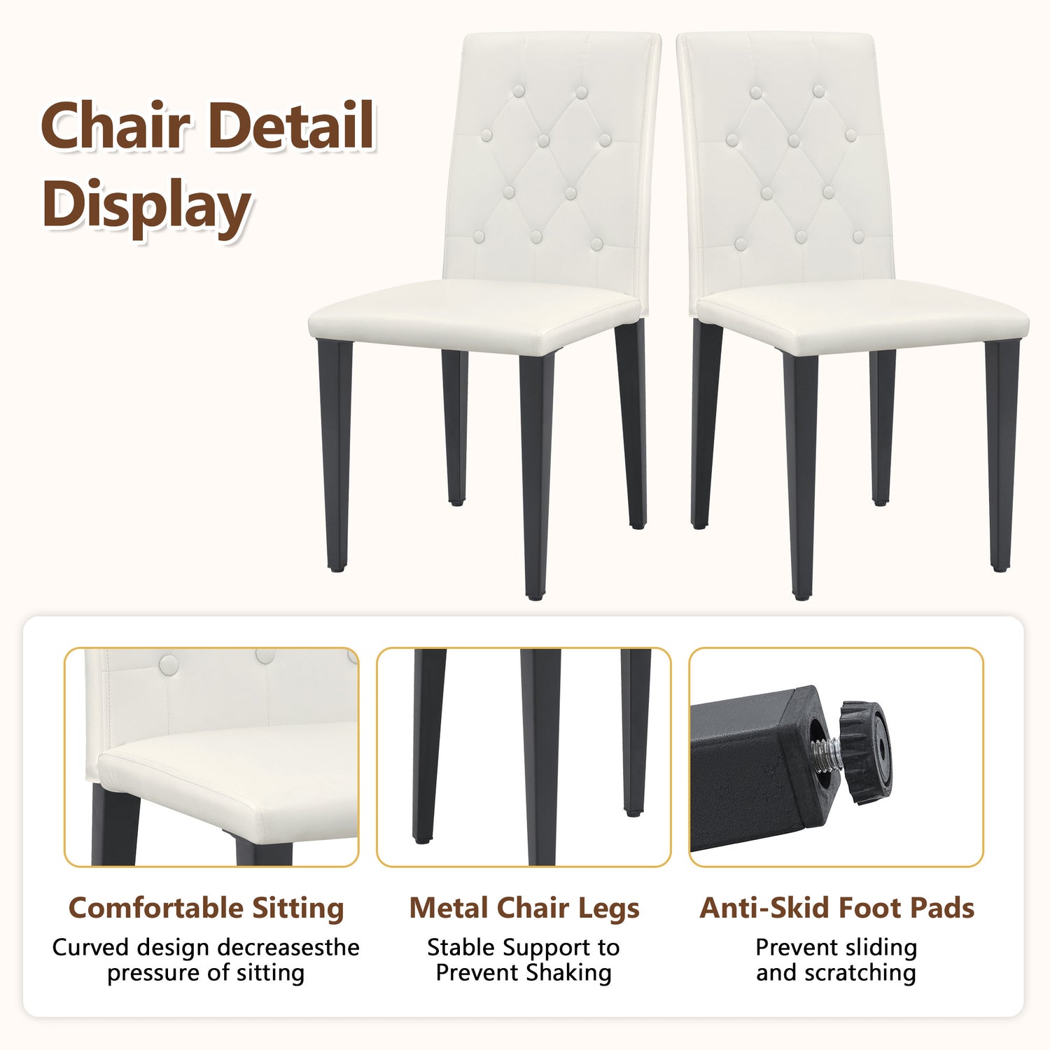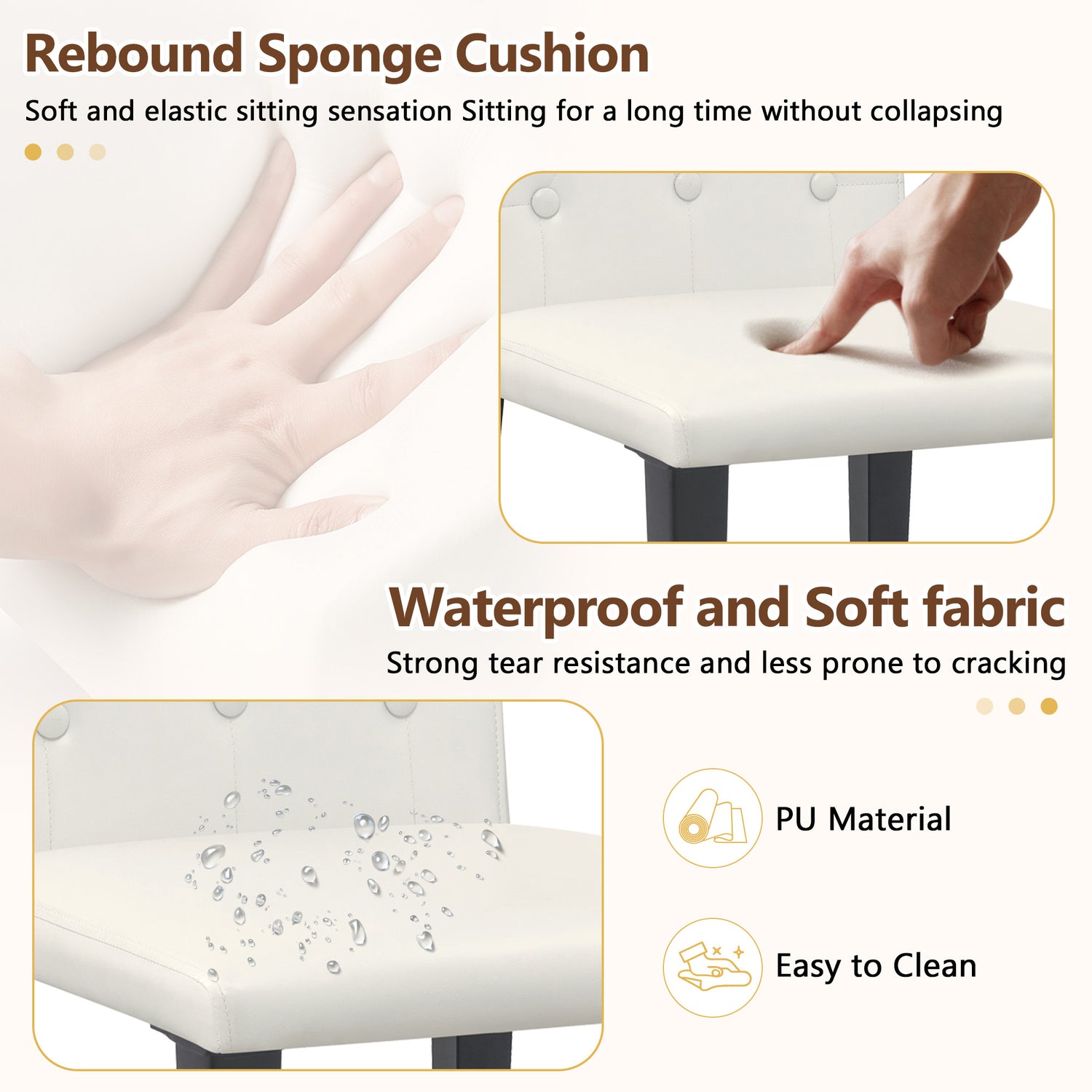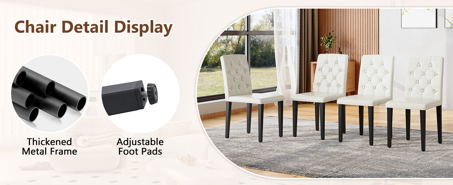 - High quality PU material: The backrest and seat cushion are made of PU material, which not only has a delicate appearance, but also is very easy to clean. Simply wipe with a damp cloth and mild detergent to keep the dining chair clean as new.