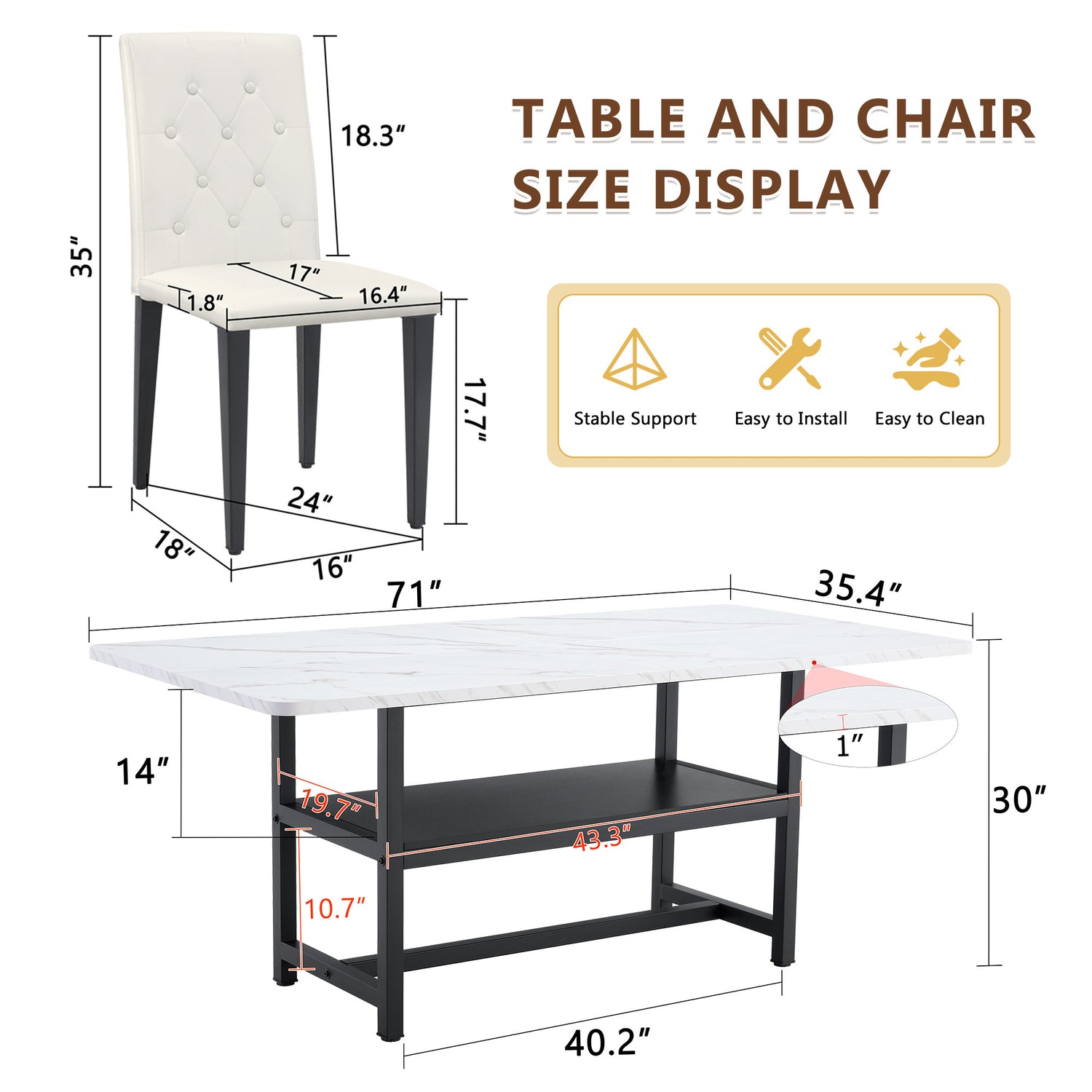 - Size adaptation: This dining table measures 71 inches in length, 35.4 inches in width, and 30 inches in height. With its grand specifications, it can easily accommodate multiple people dining at the same time, making it perfect for both family gatherings and friend parties.