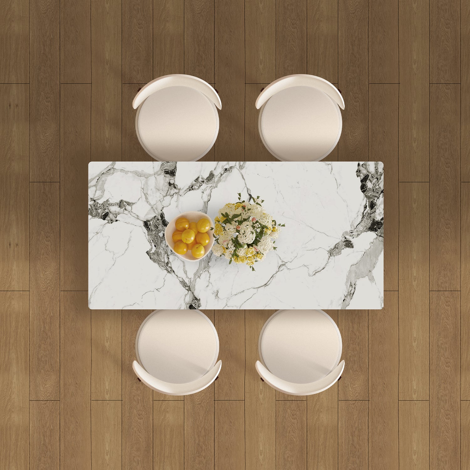 - COMPLETE 5-PIECE SET: This modern dining set includes a spacious table and four matching chairs, providing a perfect seating solution for 4-6 people.