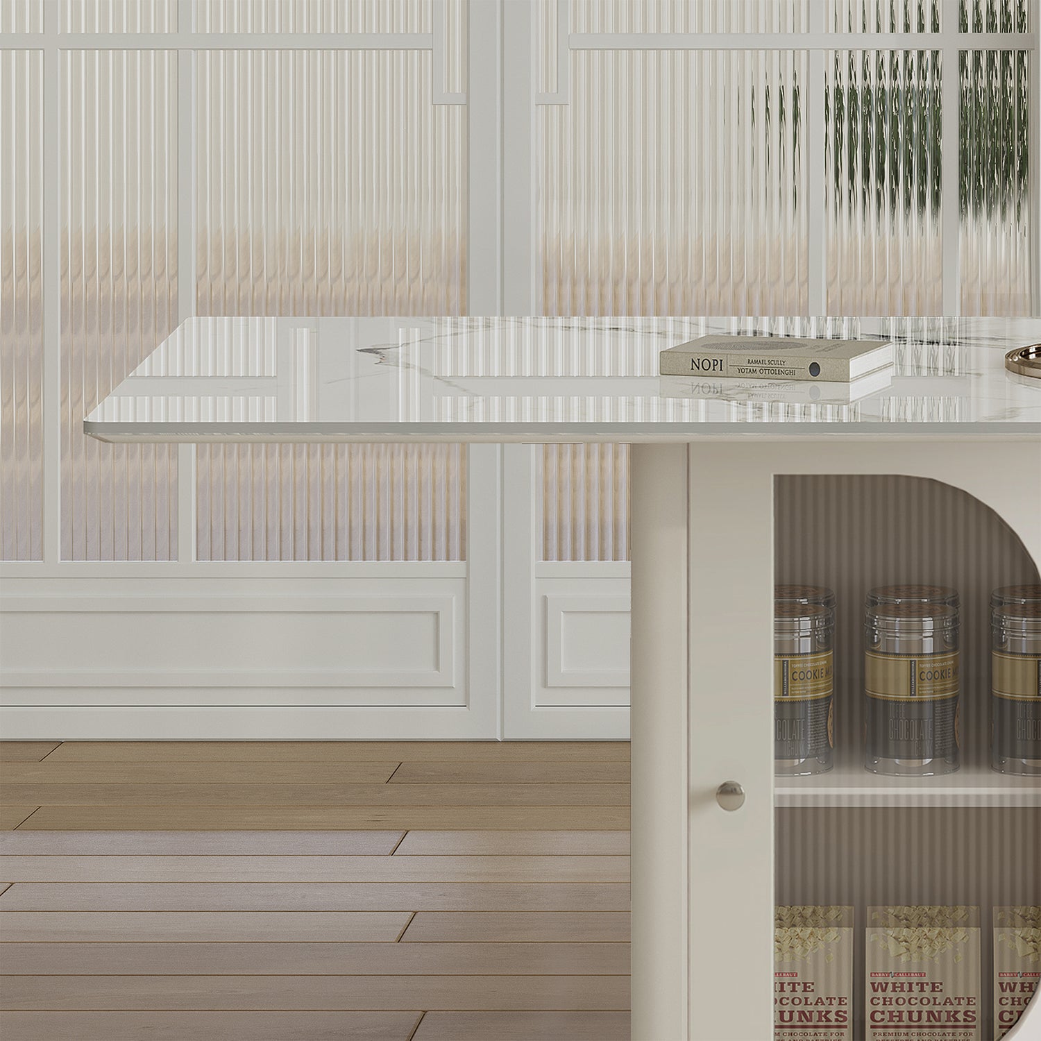 - SMART STORAGE SOLUTION: The built-in side storage racks and transparent glass cabinets provide convenient space for storing essential items for meals.