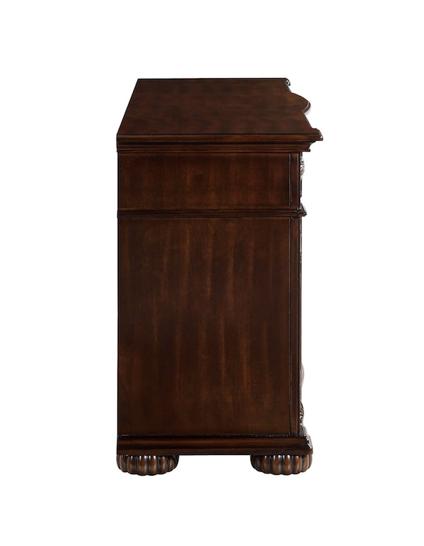 The Homelegance Adelina Collection embodies the spirit of timeless luxury with its rich cherry finish, carved details, and classic Old-World design. From its LED-lit hutch to its hand-carved pedestal table, each piece combines functionality with heirloom-level artistry, elevating your home into a masterpiece of traditional design.