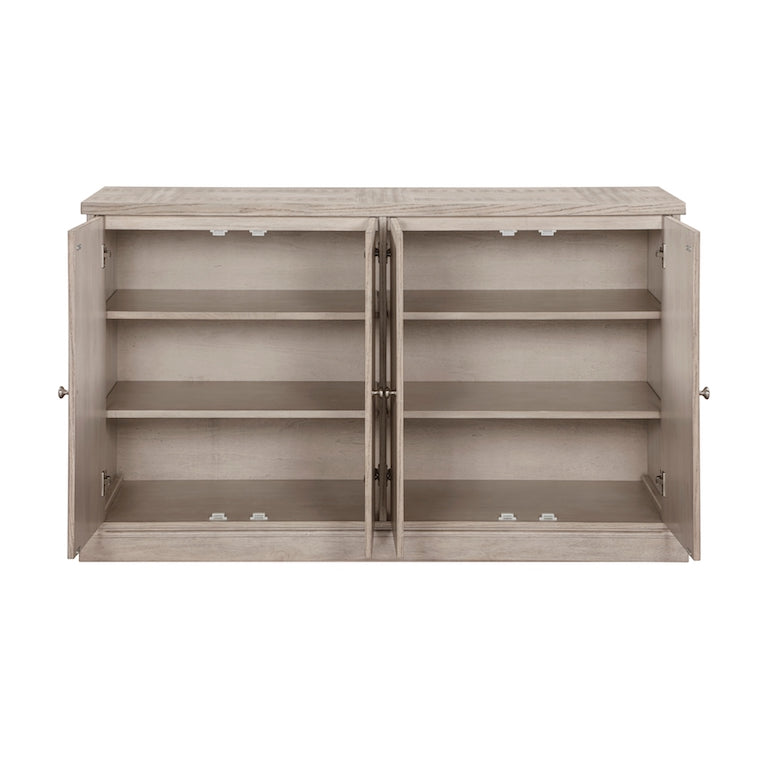- Features 2 side cabinets each with 2 adjustable shelves