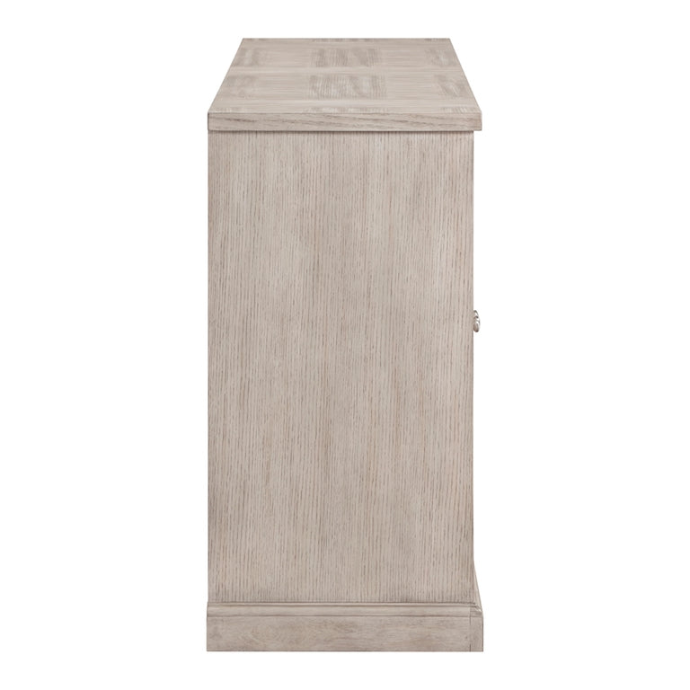 - Light gray oak veneer construction for visual warmth and durability