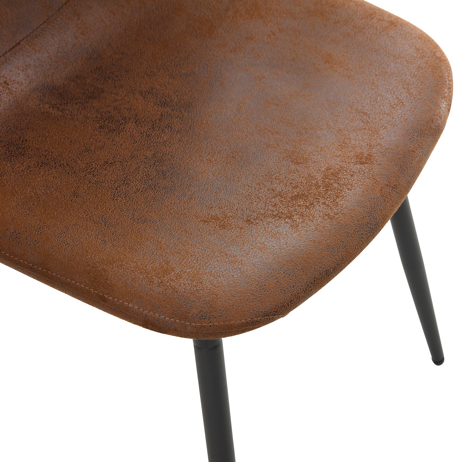 Table and chair set.79'x31.5' with X-shaped Black Metal Table Legs,Wood Grain Textured MDF Crossbeam.Paired With 8 Technology-Fabric Brown Chairs With Black Metal Legs.