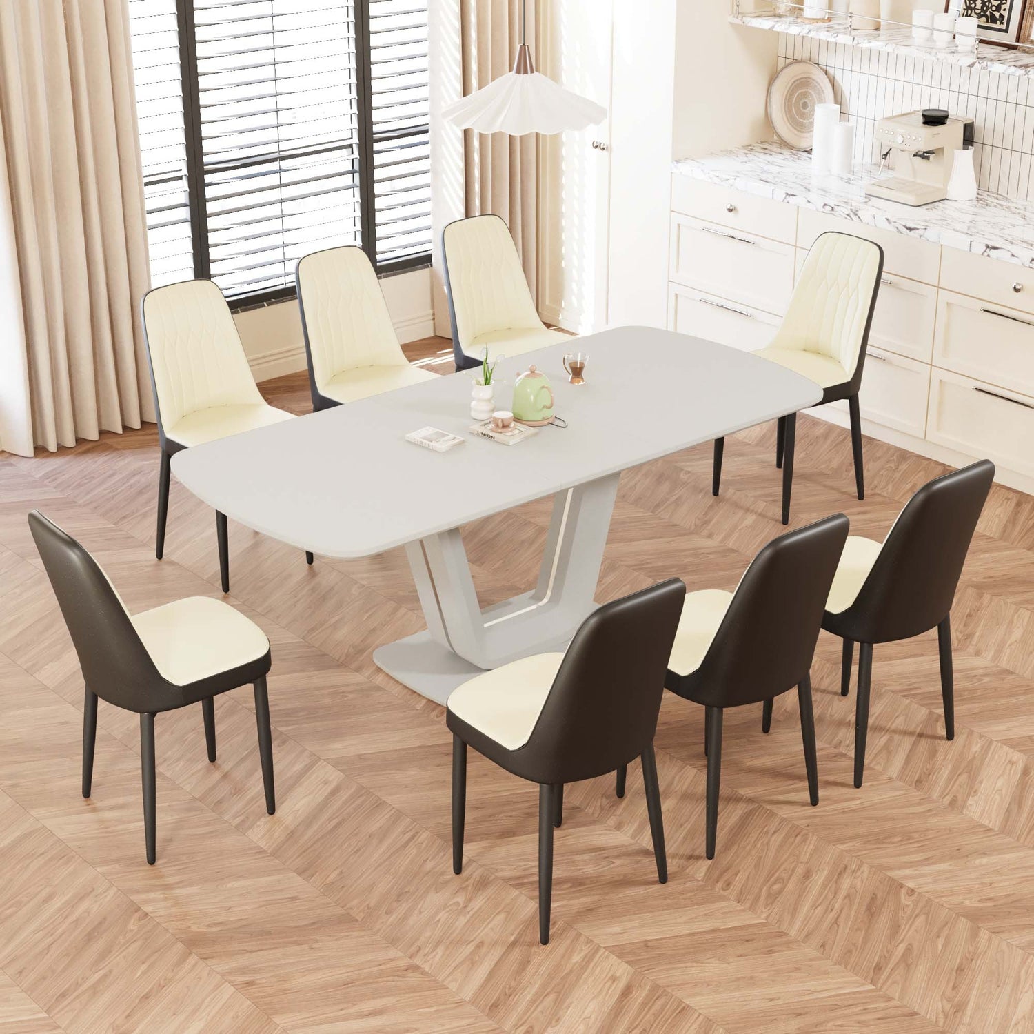 62.99-78.74' expandable dining table set for 2-8 people, equipped with 8 PU fabric thick padded dining chairs and an spacious dining table, kitchen table and chairs, with U-shaped table legs