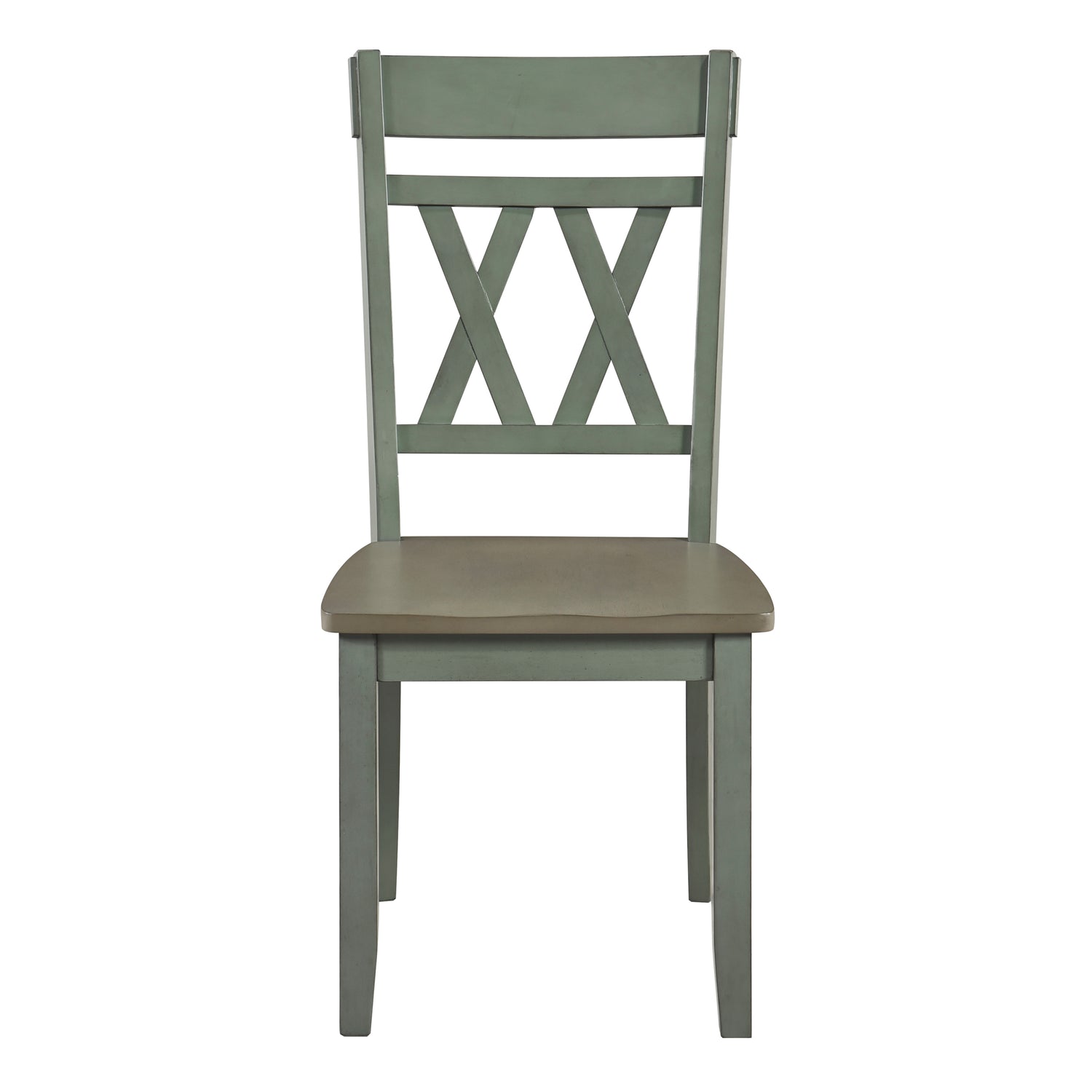 Contemporary Farmhouse Style Round Dining 5Pcs Set Table and 4x Side Chairs Wooden Furniture Antique White Gray Teal Finish