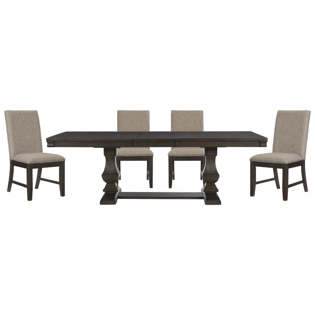 5pc Dining Set Traditional Style Dining Table Double Pedestal Base and Upholstered Beige Side Chairs Dining Wooden Furniture